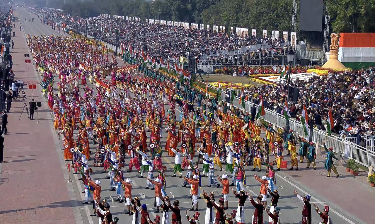 印度今天举行的共和国日阅兵式,在卡尔塔维亚大道充满了激情交织(实际上搞笑)的壮丽