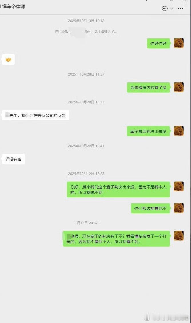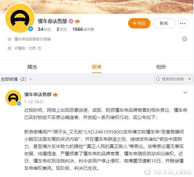 关于与懂车帝案件(图1)的声明:懂车帝公布的判决的被告龚某与本人、本账号没有任何关系,我自始至终没有参与这个诉讼。由于我微博账号十几年前被盗后,实名认证一直是错的。因此在本次案件中,懂车帝起诉的人为龚某,这个人是谁我并不知道。在和24年10月和懂车帝产生纠纷之前一年,我就向微博客服要求过更改实名,但是没有成功。(图2)在24年7月,我与负责新浪微博汽车运营的老师,在做微博"汽车博主"身份时,使用的是我本人真实资料做的汽车博主实名认证,并再次说明了账号实名认证不是我。(图3)所以懂车帝告的龚某,并不是我本人。在25年9月手机突然收到了法院的短信后,我多次联系了审理法院,说明希望加入被告,并按照法院的要求提供了声明,自己的姓名、身份证号码,联系方式,身份证复印件正反面,并提供之前和微博客服的要求修改实名的证据截图,通过 EMS 的方式,邮寄至法院。(EMS:8939530411301)但是遗憾的是,懂车帝始终未将我加为被告,导致了一系列问题。第一,我已经取得小鹏官方的双机位原始采访视频,和其他大量相关证据,并进行了公证(图4)。但这个案子里面没有被告出庭,也就没人没证据来证明懂车帝是错的。在开庭时,我所有的证据都无法提交,我的律师也只能参与旁听。第二,本人不是被告,我连法院具体判了哪条微博侵权都不知道。我甚至找懂车帝的委托律师要判决,但也没给我(图5)。所以时至今日,我都不知道懂车帝到底告了我哪条微博侵权,也不知道法院判了哪条侵权。第三,懂车帝拿到了被告缺席的判决,而我却是案外人,还无法上诉。早在25年3月就不知道通过什么手段删了我的大量微博。而且最后哪怕事前提交了希望自己加为被告的说明,我也无法参与诉讼,大量证据无法出示,直接判给毫不相关缺席的第三人。此前我发布的原始微博内容,并非如懂车帝所引用的那样,称懂车帝是“做空中国势力,甚至境外反华势力的操控”。事实是,我的原文是在基于各种事实下提出的一个疑问,并明确使用了问号。当时,正值商务部代表中国车企积极推动出海、与欧盟谈判的关键阶段,国家正大力支持中国品牌走出去的政治背景。基于懂车帝断章取义剪辑小鹏采访视频的剪辑,形成与央媒相反的理解;以及结合之前被国内数个车企质疑的事实。在例举了大量事实后,提出合理疑问:懂车帝是不是有境外资本,甚至反华势力的操控?懂车帝作为头部媒体,如果成为大量不实信息的信源,我为什么不能提出合理质疑?我认为媒体应该接受广大读者的监督,懂车帝作为知名头部媒体,如果觉得不妥,有必要回复疑问,并还原完整真相,而不是面对普通民众合理质疑都直接冠以“造谣”的抹黑。作为守法公民,我不会在没有任何依据的情况下就乱下结论,因此本人严正声明:1.我从未以任何方式认定“懂车帝系境外资本、反华势力操控”;2.原始言论为在大量已发事实面前的合理疑问和质疑,属于公民正当言论自由范畴;3.懂车帝法务部在引用本人原文与传播过程中存在明显断章取义的歪曲,对本人声誉造成恶劣影响;4.本人保留进一步通过法律途径维护自身合法权益的一切权利。最后,我相信正义永远不会迟到,后续我将要求律师继续通过法律维护自己的权益!(图6)防止走失大家可以关注: