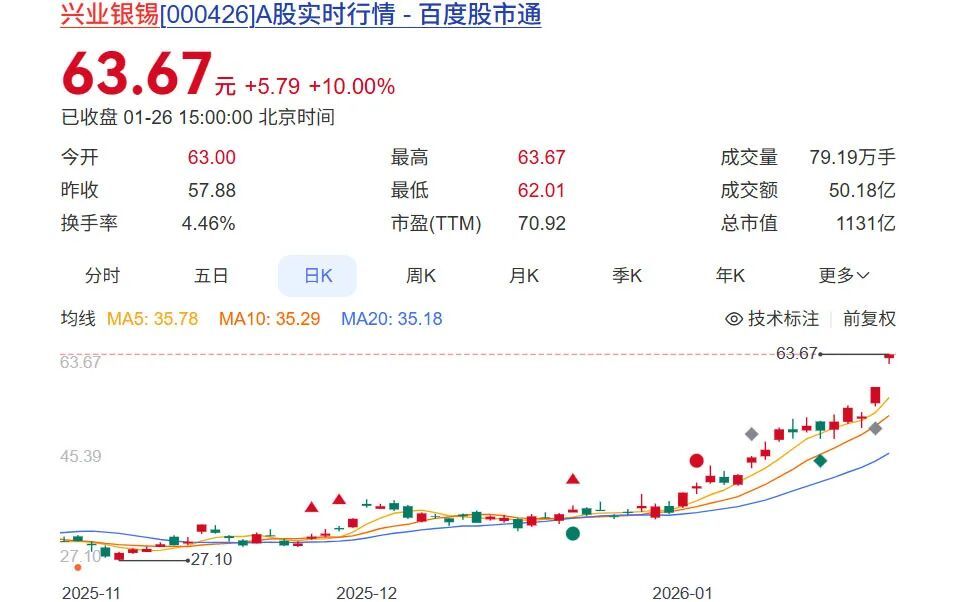 1月26日,他掌舵的兴业银锡,再度斩获一个涨停,市值超1100亿元。