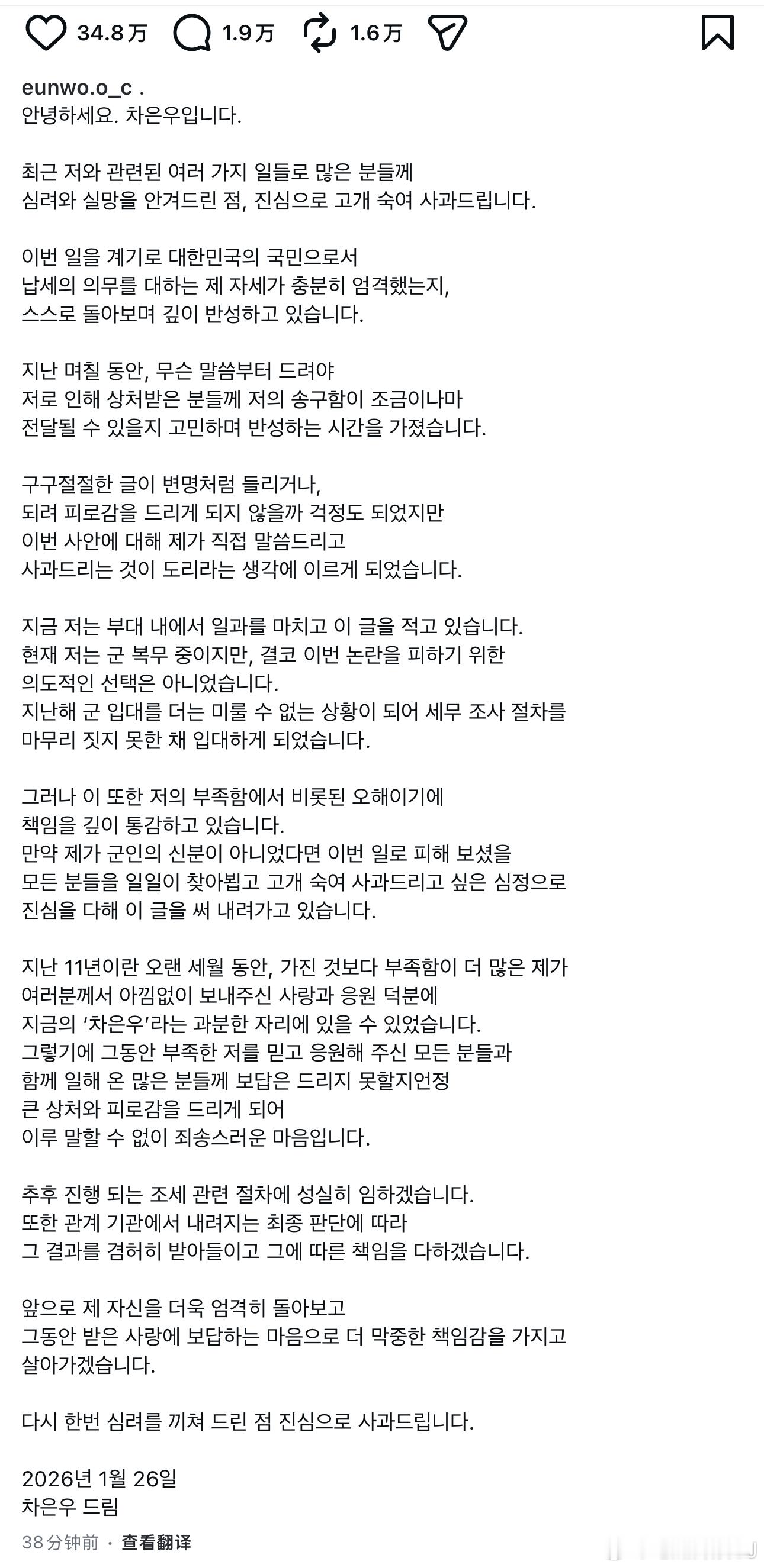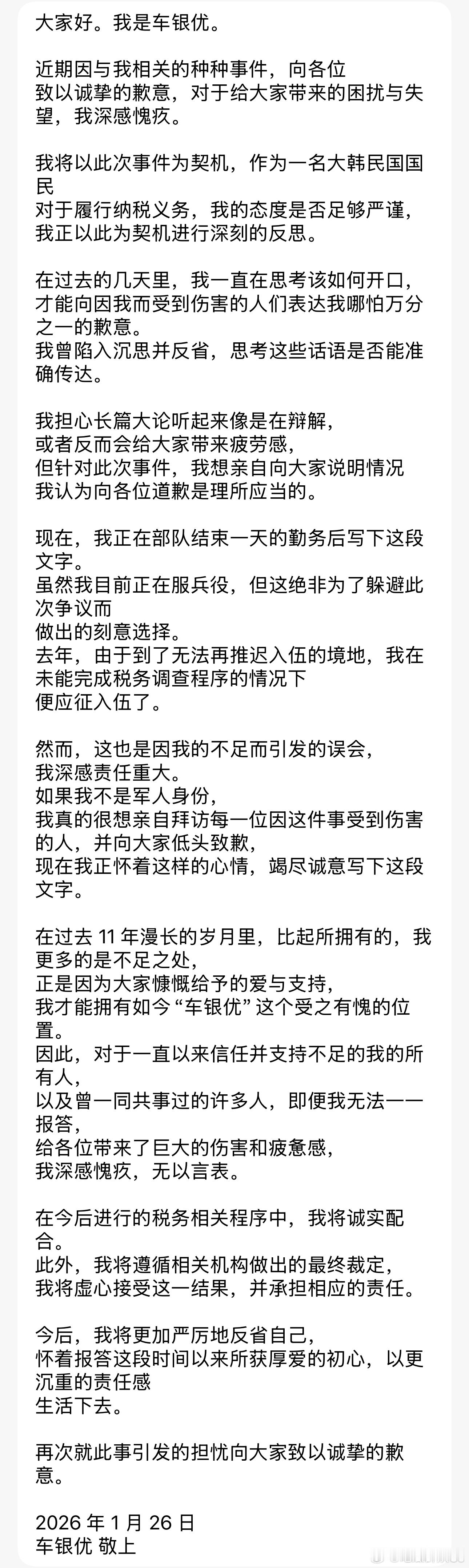 车银优也要塌了?韩媒报道,车银优疑似通过母亲成立的无实体公司逃税200亿韩元,其