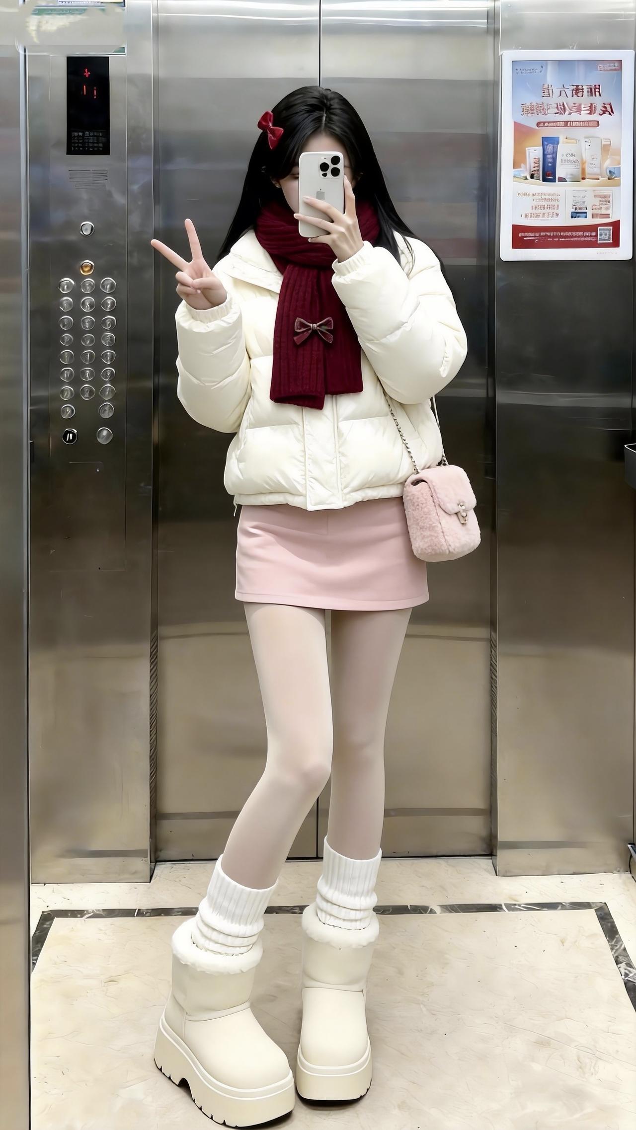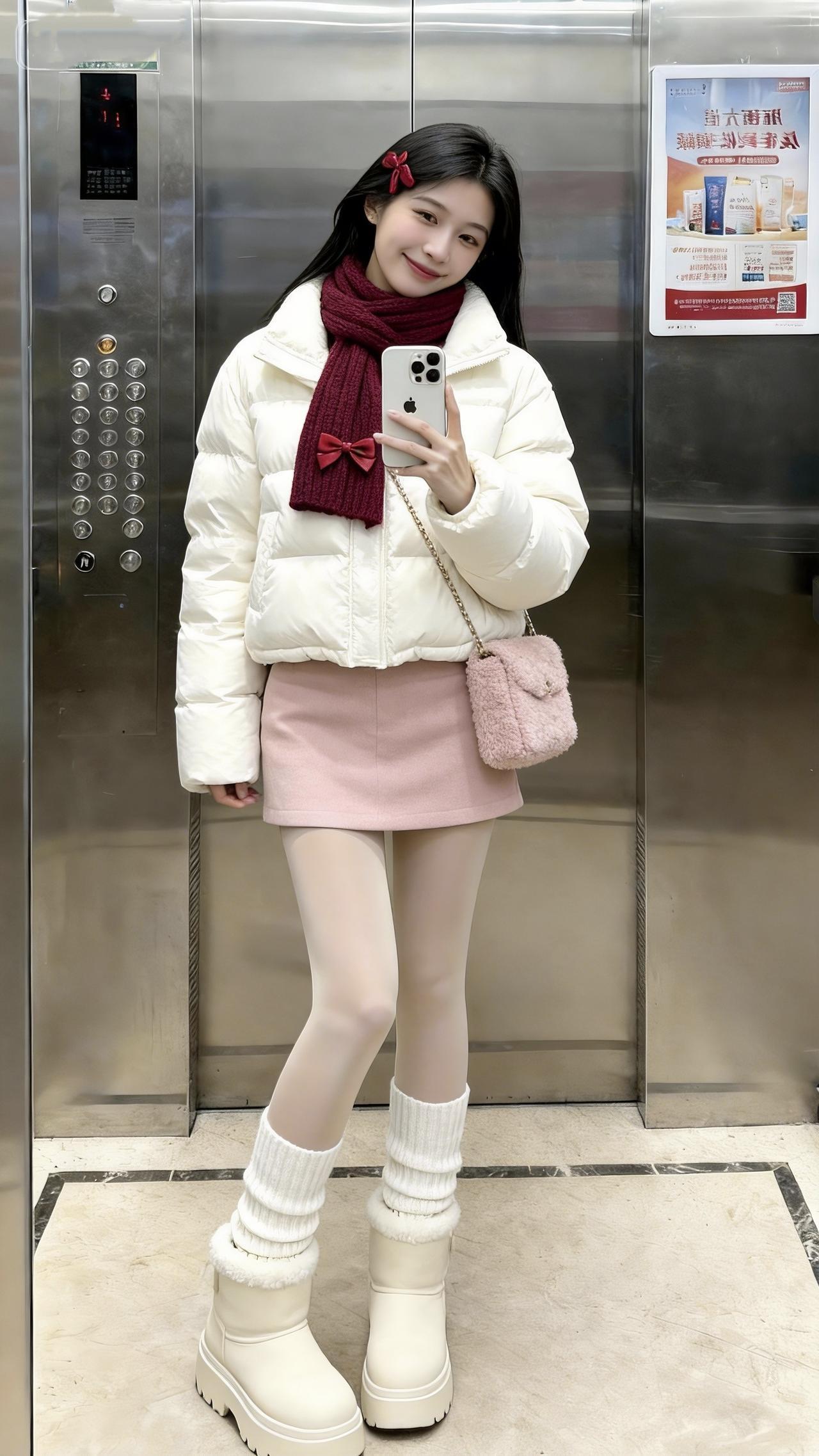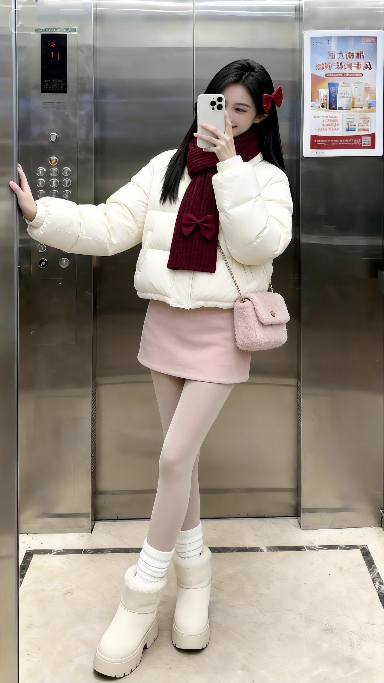 让一让,美女来了。甜甜的我出现一下。甜妹 甜美穿搭 电梯拍照 冬日穿搭
