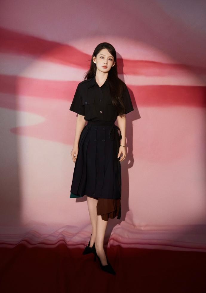今天李沁在成都出席时尚活动,她这次搭配了一件黑色的裙子,看起来特别的有气质。
