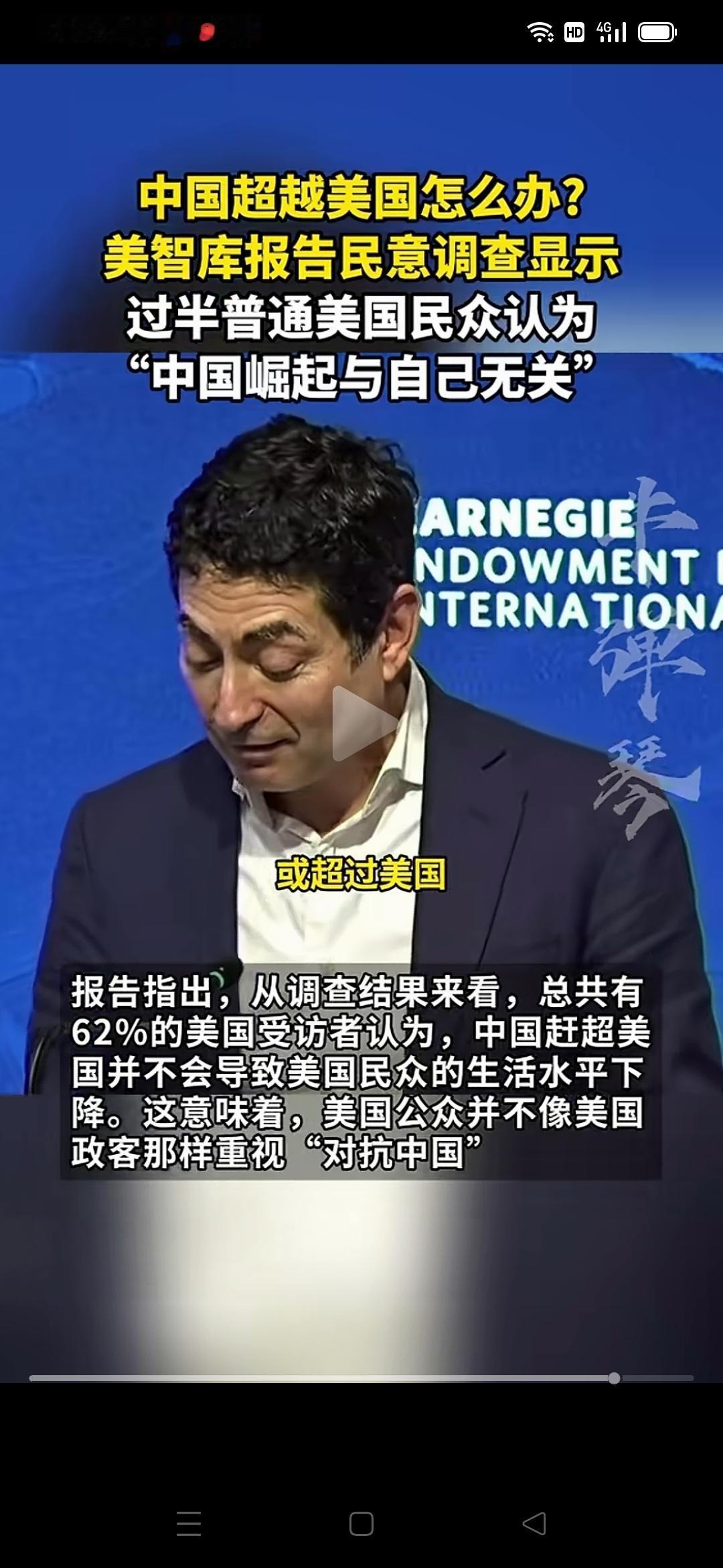 能想到吗?超六成美国人不忧中国崛起,本土优先心态成主流。 美国卡内基国际和平基金会于2026年1月21日发布民意调查,62%受访者认为中国崛起不会让自己生活变差,其中54%直言“无关”。值得注意的是,59%受访者认同美国只是“多个强国之一”,54%认为美国全球影响力在下降。 民意不可违!调查报告说明,美国实力下降,美国民众对单极霸权的认同弱化,更倾向于“本土优先”,不愿为所谓“印太战略”军费开支买单。这种民意底色,为中美竞争与合作并存提供了可能性。 美国民意转向 大国博弈新动向 国际战略分析 中国地位的崛起