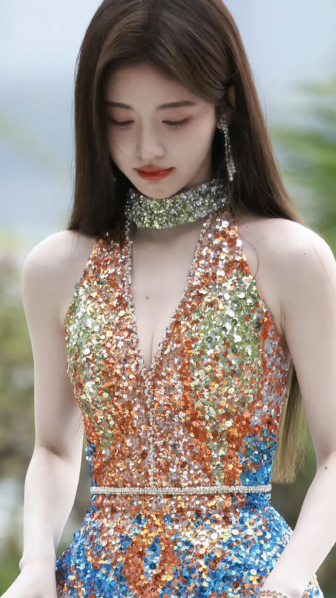 鞠婧祎!深 V 亮片裙裹出好身段,锁骨杀!