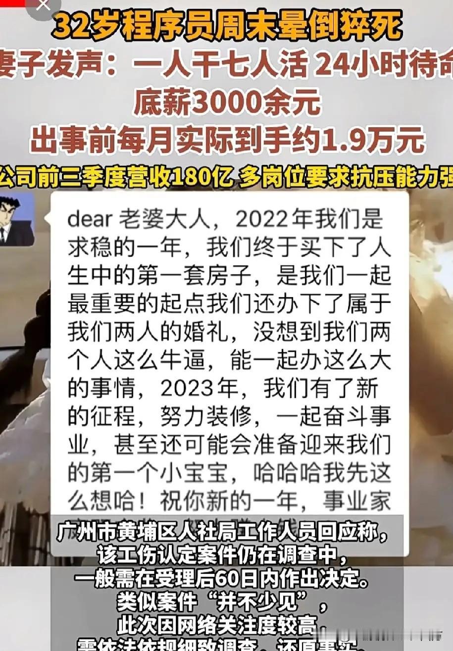 32岁程序员抢救时被拽进工作群,死后8小时还在收催工消息,这不是奋斗,是拿命换KPI!这场发生在周末的悲剧,撕开了职场过劳的残酷真相。 据《中国职场人健康报告》显示,超60%的互联网从业者每周加班超10小时,过劳猝死案例年增15%,隐形加班已成行业毒瘤。而这位程序员,正是被这颗毒瘤吞噬的又一个受害者。 工作日披星戴月,归家时间定格在深夜;周末沦为“移动办公室”,OA系统的访问记录、待办清单的催更提示,将休息时间切割得支离破碎。病历上的“经常熬夜、工作强度大”,是身体发出的濒死预警,却被“绩效”“进度”“责任”的枷锁死死压住。他不是不想停,而是不敢停——房贷的压力、晋升的焦虑、行业的内卷,逼着他把健康当成了可以透支的筹码。谁能想到,那些熬过的夜、赶过的工,最终没能换来向往的生活,只留给家人无尽的悲痛。 更令人心寒的,是企业的冷漠。一人扛起六七人的工作量,拒绝增编却疯狂催进度;员工抢救之际,工作群的消息仍在轰炸;悲剧发生后,试图用抚恤金抹平一切,逃避用工责任。所谓的“奋斗文化”,早已异化成了“卖命换钱”的遮羞布。 反观行业内的正面案例,某大厂推行“强制下班制”,规定晚9点后关闭办公系统,员工不得远程处理工作。制度落地后,不仅员工效率提升20%,离职率还下降12%。这足以证明:休息不是偷懒,是生产力的保障。 32岁的生命戛然而止,敲醒的是无数职场人的警钟,也揪紧了每一个旁观者的心。我们难以想象,他的父母要如何承受白发人送黑发人的锥心之痛,他的伴侣要如何独自面对未来的漫漫长路,他的孩子(如果有)又要如何在没有父亲的时光里长大。 别让年轻的生命成为资本逐利的祭品,法律要严惩超时用工,企业要摒弃“加班即敬业”的畸形文化,打工人更要守住健康底线——没有健康,所有的奋斗都是空谈。