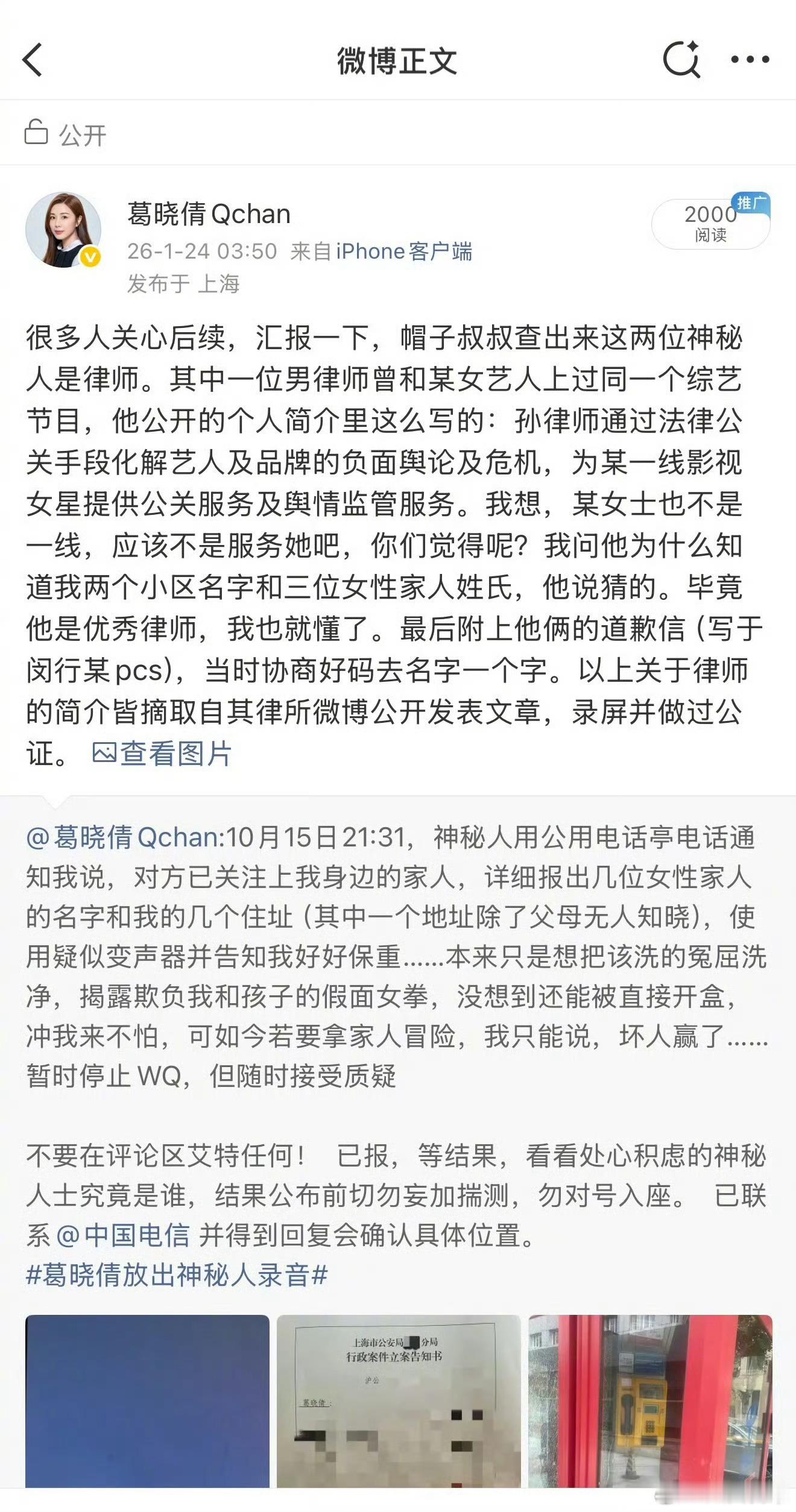 我去!好吓人,黑社会吗?张雨绮前夫袁巴元的第一任妻子葛晓倩发微博,去年10月,有