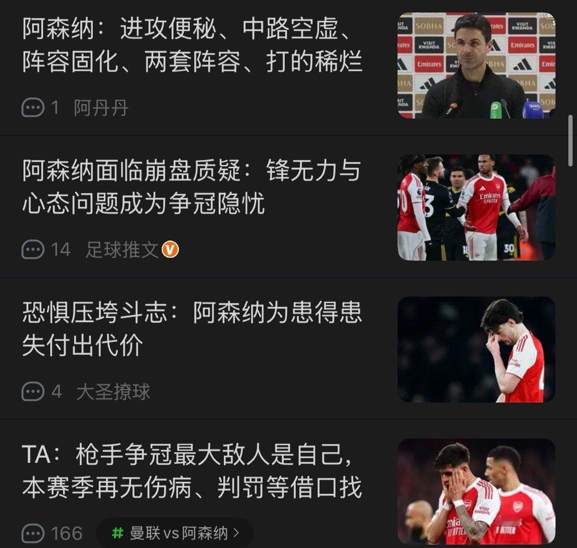 周中欧冠7连胜吹上天现在又要说崩盘球迷的心也太脆弱了其实要打败阿森纳确实不容易必须要失误送礼外加世界波才能办到