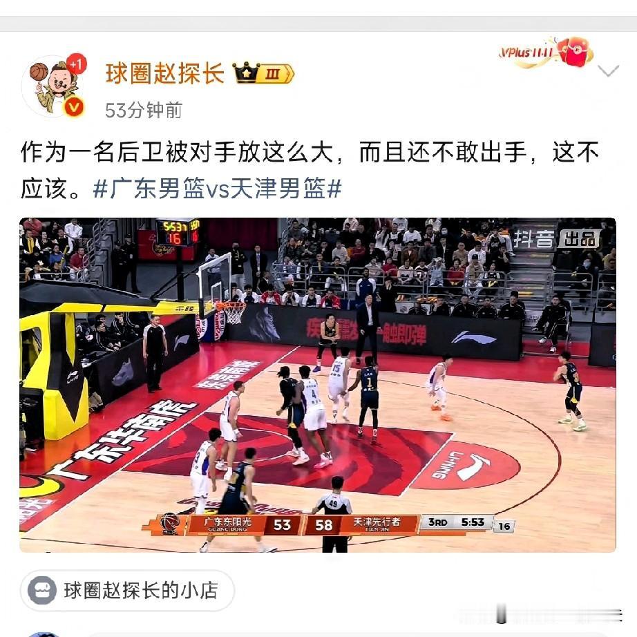 篮球记者提出质疑:广东后卫杨溢竟然被天津防守放的这么大,而且还不敢出手,也不应该!恕我直言,杨溢打cba其实勉为其难,全世界都知道没篮,对位还被谷泽浴军训,主力受伤的机会顶不上去以后你还有啥机会!作为全联盟最矮后卫还没篮真的可以拜拜了,一点进攻威胁都没有,是因为广东外援萨林杰后来接管比赛关键球,杨溢才得以在大空位投进三分,总体表现中规中矩,遇到厉害的队不好用