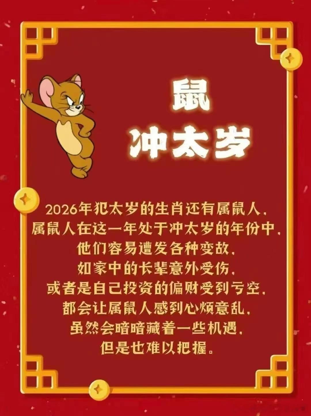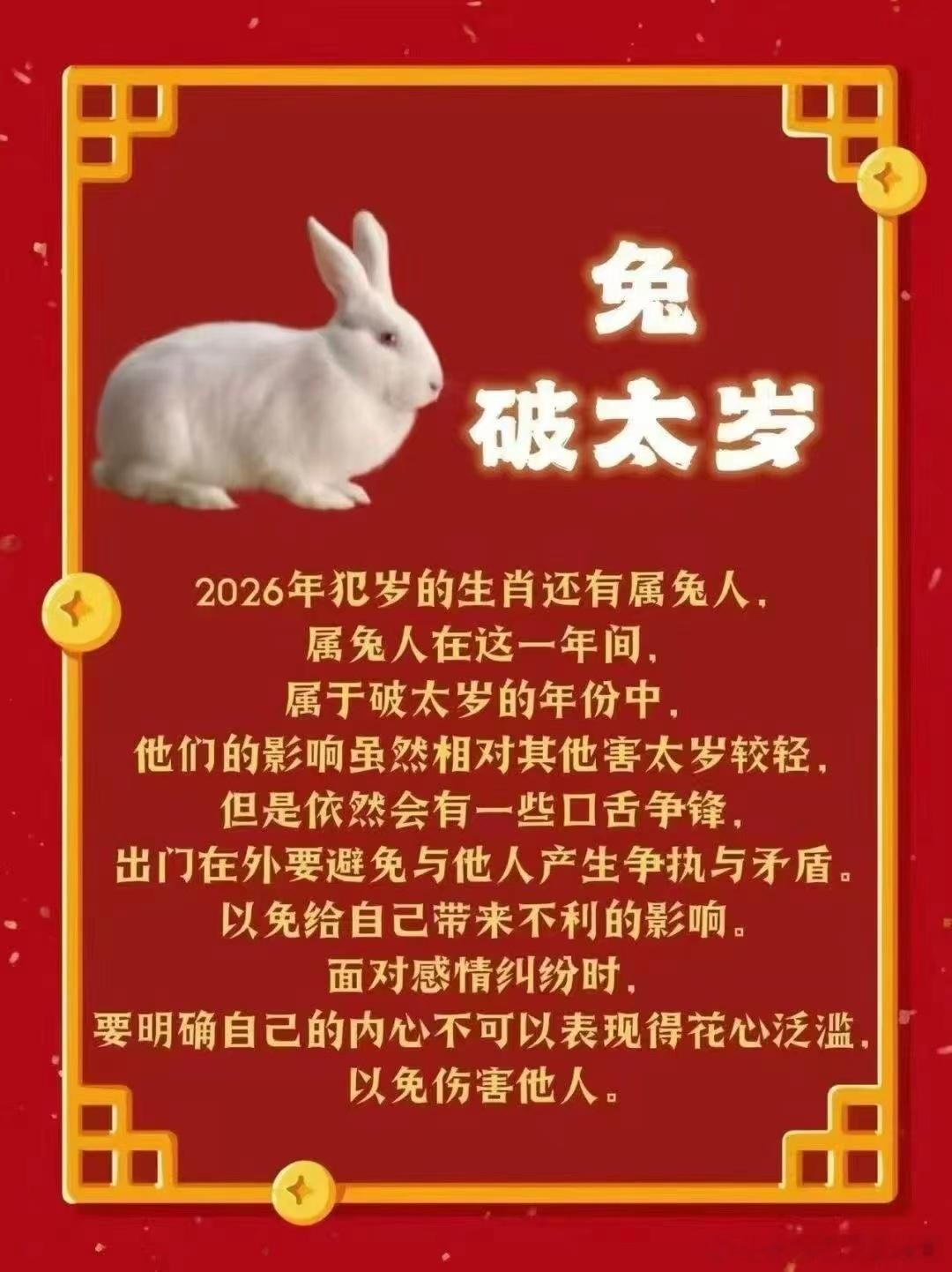 2026年立春比较早(阳历2月4日)腊月十七就立春了。所以化太岁需要抓紧了!2026年犯太岁的属相有【属马、属鼠、属牛、属兔】的人。有条件的需要尽早化太岁,以保26年平安顺遂! [抱拳]