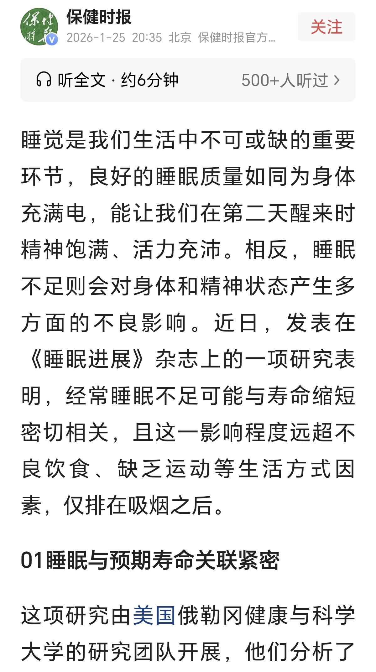 这不是在贩卖焦虑吧?看完这篇研究结果,我昨晚怎么都睡不着觉了。睡眠对寿命影响那么
