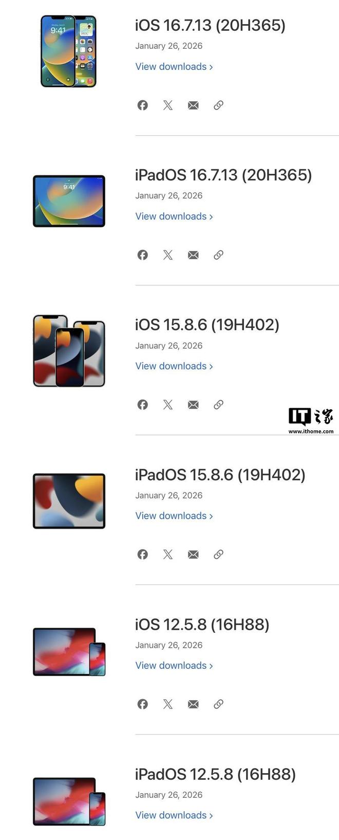 IT之家1月27日消息,苹果为适配第二代AirTag,今天(1月27日)发布大规模系统更新,不仅将最新系统升级至iOS26.2.1,更罕见地向iOS18、iOS16、iOS15甚至iOS12等旧版系统推送了补丁。