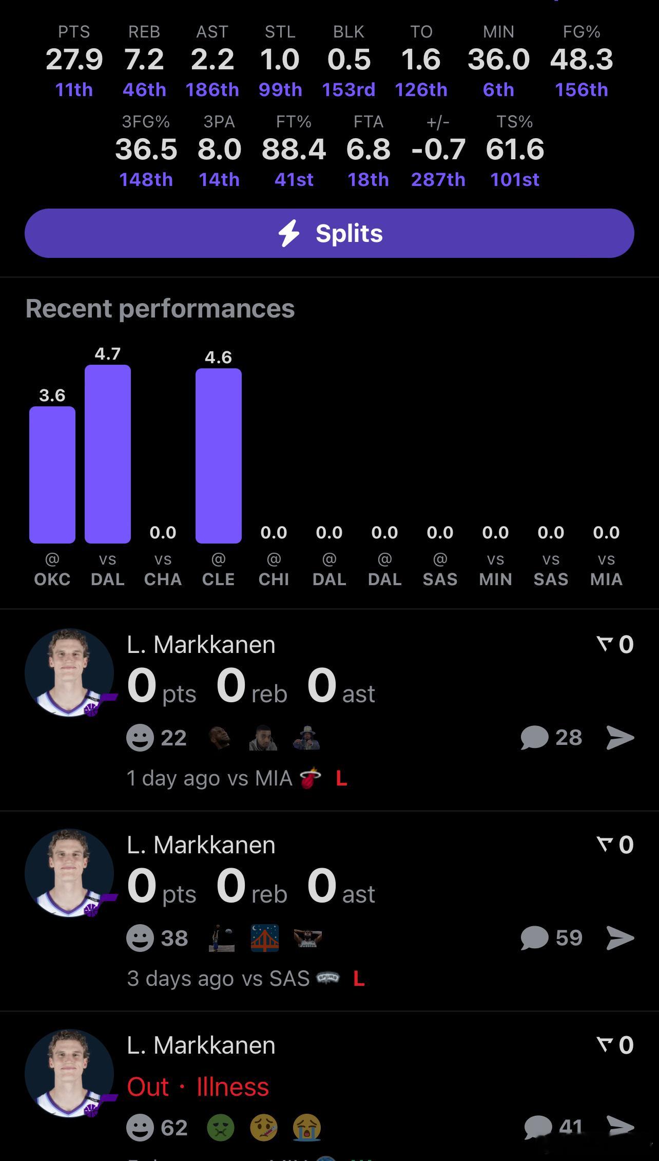马尔卡宁缺席了过去7场比赛,预计明天将要复出!🫣🫣🫣🫣🫣