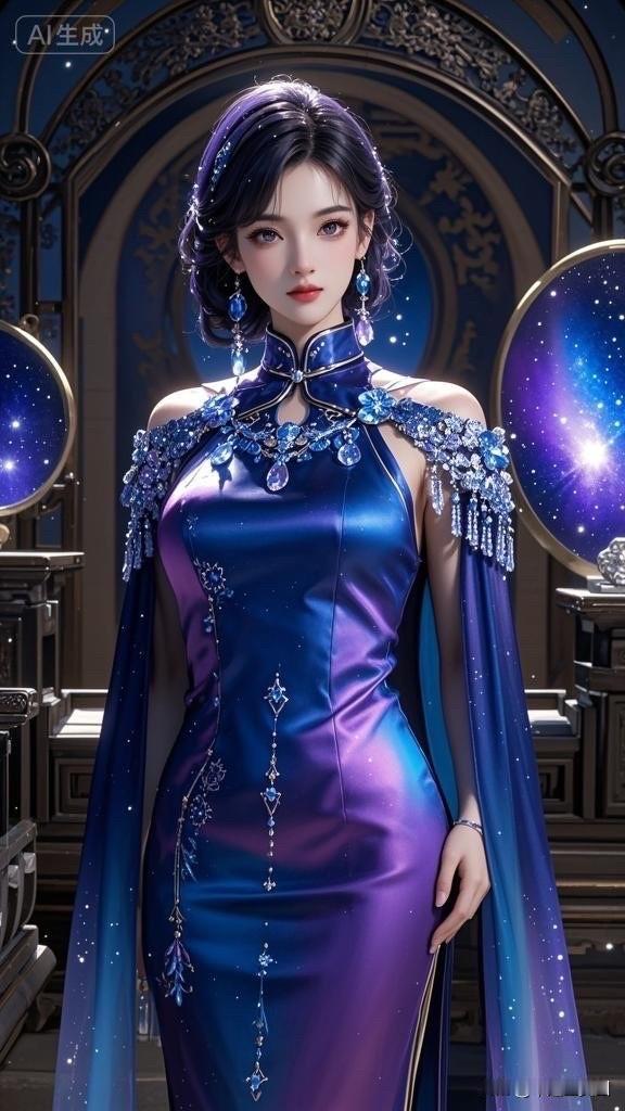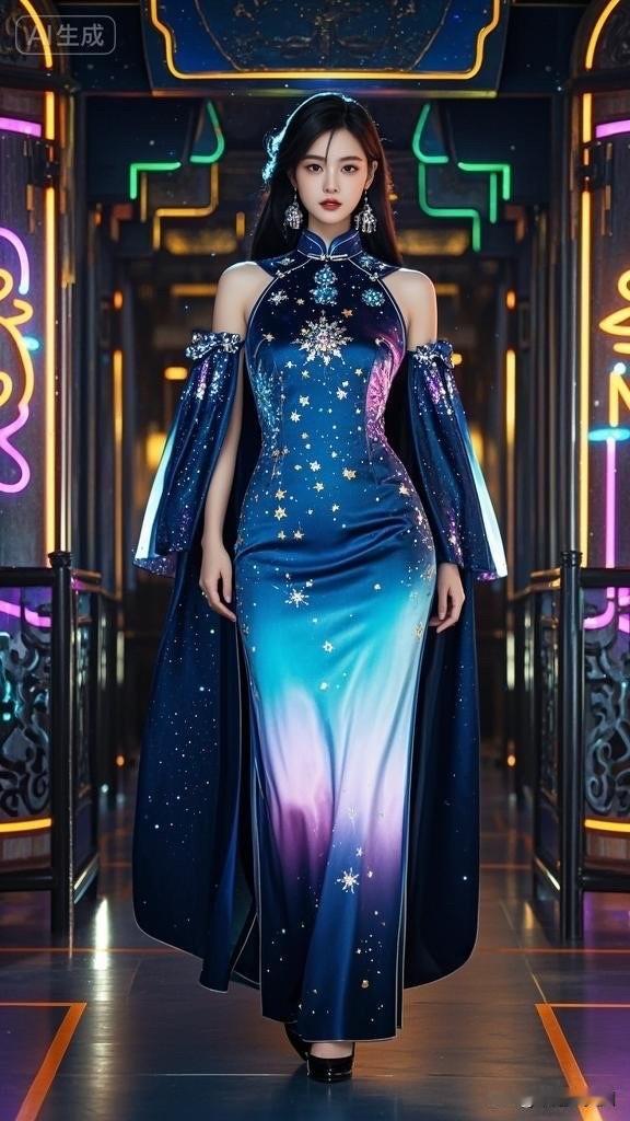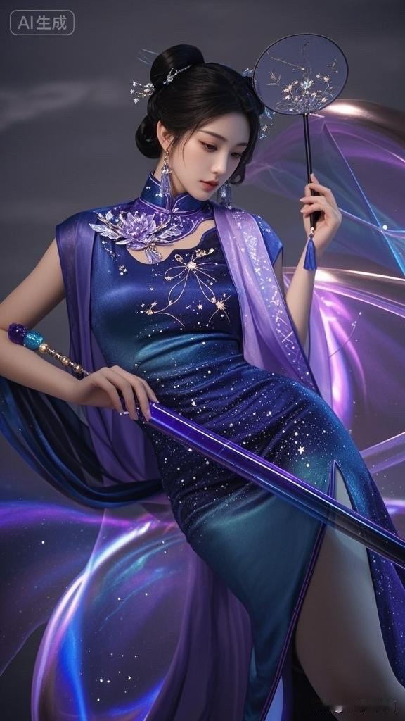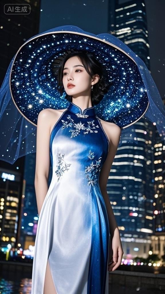 梦幻古风少女,手持花伞,星河璀璨,唯美动人。