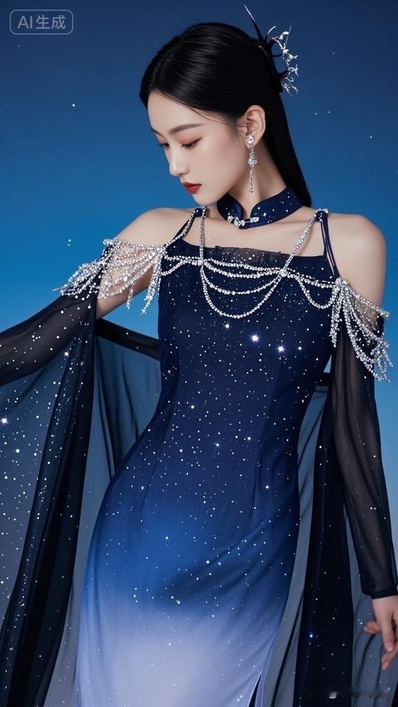 仙气飘飘的少女,银光闪闪的裙装,梦幻般的氛围