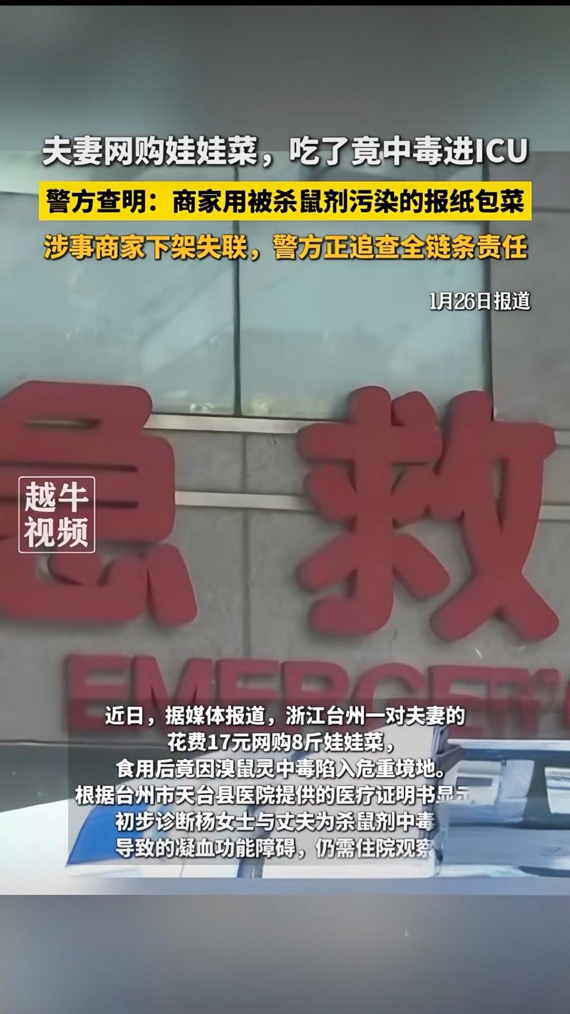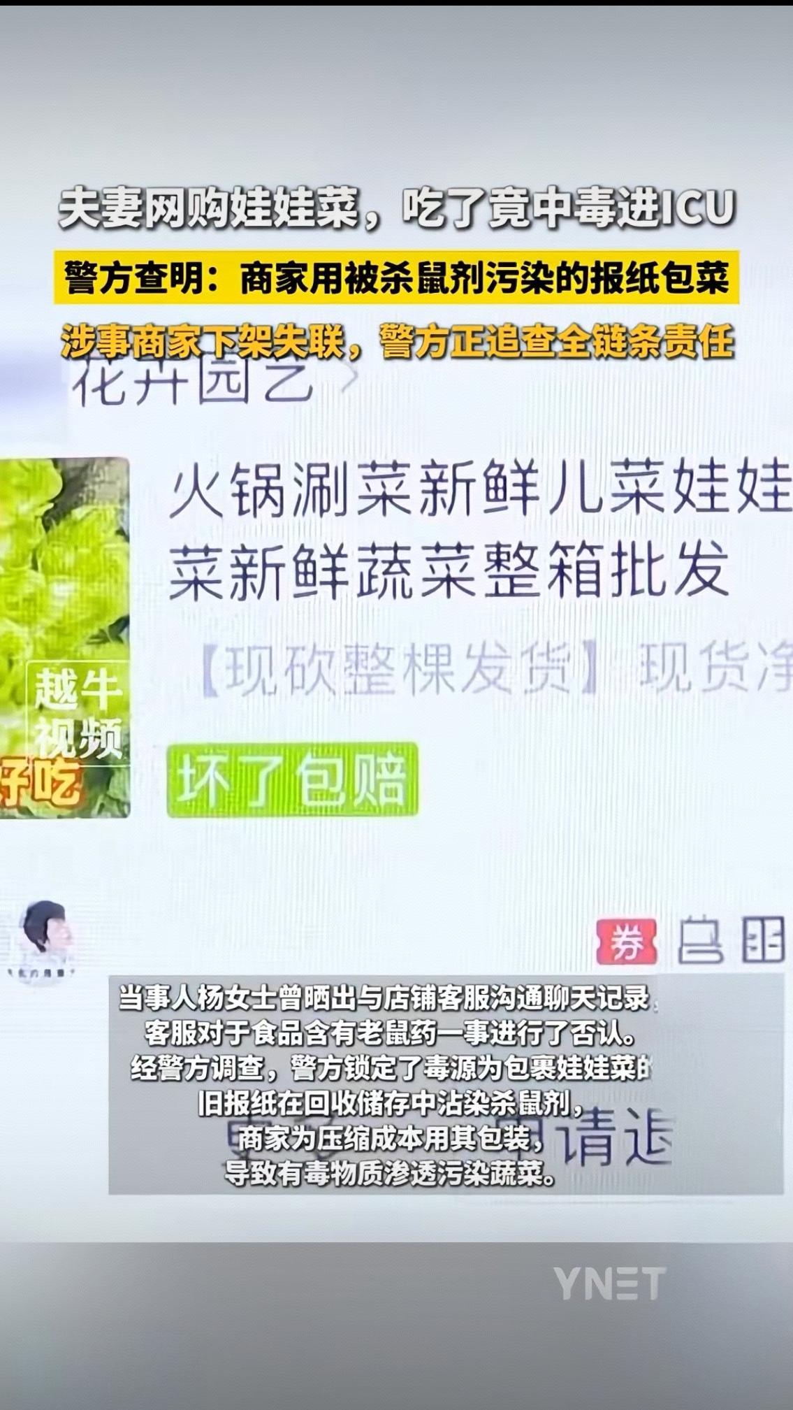 17块钱8斤的网购娃娃菜,竟让一对夫妻双双躺进ICU——这样的悲剧谁能想到?杨女士夫妇收到蔬菜当晚就下锅烹饪,没成想饭后不久便浑身不适,第二天更是流鼻血不止,最终被诊断为杀鼠剂中毒,丈夫出现全身出血、肺积水等危重症状,妻子在ICU抢救一个多月才勉强好转 。更让人寒心的是,当杨女士带着医院检测报告质问客服时,对方却矢口否认,随后店铺直接下架失联,只留下夫妻俩面对高昂的医疗费用和未知的康复之路。 警方的调查结果揭开了惊悚真相:毒源正是包裹娃娃菜的旧报纸。这些回收的报纸在储存时沾染了溴鼠灵类杀鼠剂,商家为了省下几分钱的包装成本,竟将这种致命隐患与入口蔬菜紧密捆绑,任由有毒物质在潮湿环境中渗透污染。要知道,报纸油墨本就含有铅、苯等致癌物,长期接触已对健康构成威胁,更何况是沾染了剧毒杀鼠剂的废旧纸张?商家的侥幸心理,本质上是拿消费者的生命当赌注。 这起事件绝不是个例。你是否在菜市场见过用报纸垫草莓、包蔬菜的商贩?是否默认“洗洗就没事”?可专家早已明确警示,油墨中的重金属和有机溶剂会通过食物黏膜渗透,而杀鼠剂这类剧毒物质,哪怕微量摄入也可能引发凝血功能障碍、器官衰竭,甚至危及生命 。更值得深思的是,商家压缩成本的背后,是对食品安全法的公然漠视——我国法律明确禁止用非食品级材料包装食品,涉事商家不仅要承担医疗费、误工费等全部损失,还将面临价款十倍的惩罚性赔偿,甚至可能涉嫌刑事犯罪 。 而电商平台同样难辞其咎。虽然平台已提供商家信息,但对入驻商家的包装规范是否尽到监管义务?对生鲜产品的包装安全是否有抽查机制?如果每个平台都只做“甩手掌柜”,类似的安全隐患只会层出不穷。网友们的愤怒评论戳中要害:“省的是几毛钱成本,害的是一家人性命”“网购生鲜的包装安全,该有人管管了”! 食品安全从来不是小事,它藏在每一次包装、每一次抽检的细节里。这对夫妻的遭遇,是给所有商家敲响的警钟:诚信经营不是口号,而是不可触碰的底线;也是给消费者的提醒:遇到用报纸、塑料袋等非食品级材料包装的生鲜,一定要果断说不。目前警方正追查全链条责任,希望能还当事人一个公道,更希望这次悲剧能推动行业监管的完善。 你在网购或买菜时,遇到过哪些不合规的包装?对于生鲜食品安全,你有哪些想说的?欢迎在评论区留言讨论,让我们一起为安全餐桌发声!食品安全