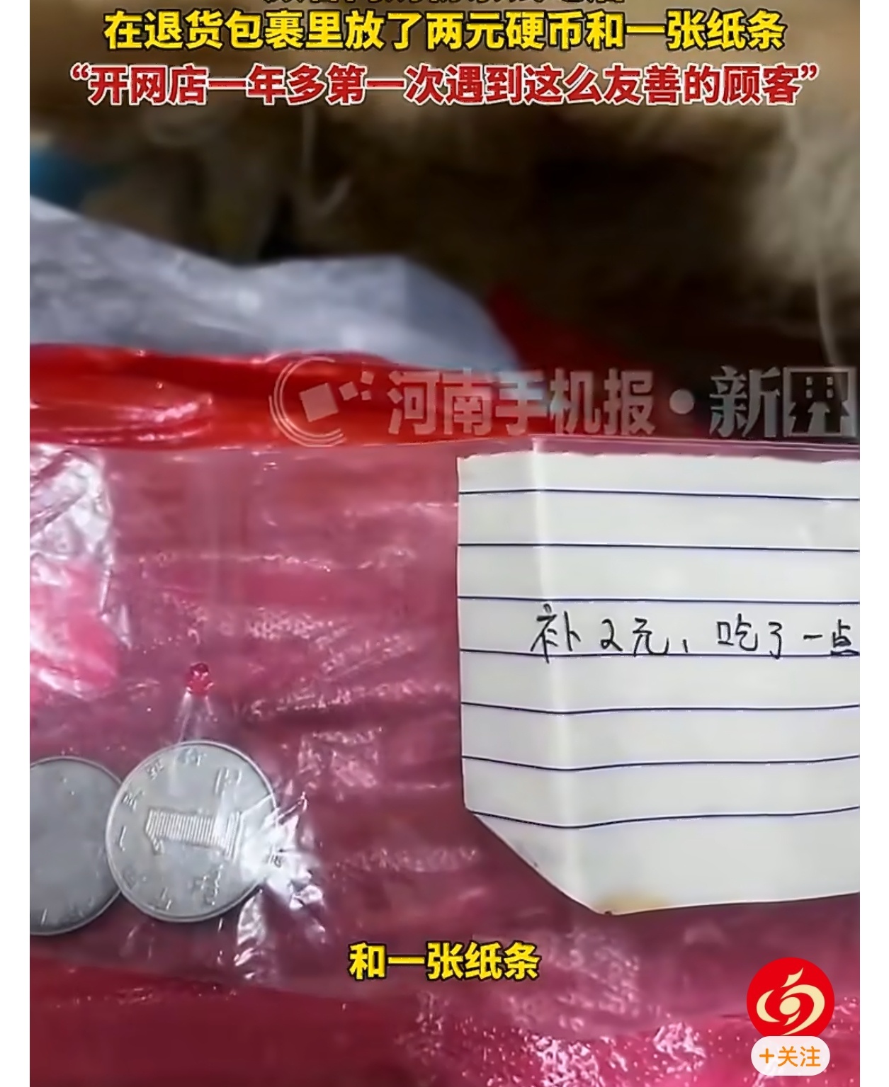 退货包裹里的2元钱让尊重具象化了起初的想法是好的,但是这样偷偷邮寄人民币也是违规了。建议退货还是说明食品情况!商家也会理解!