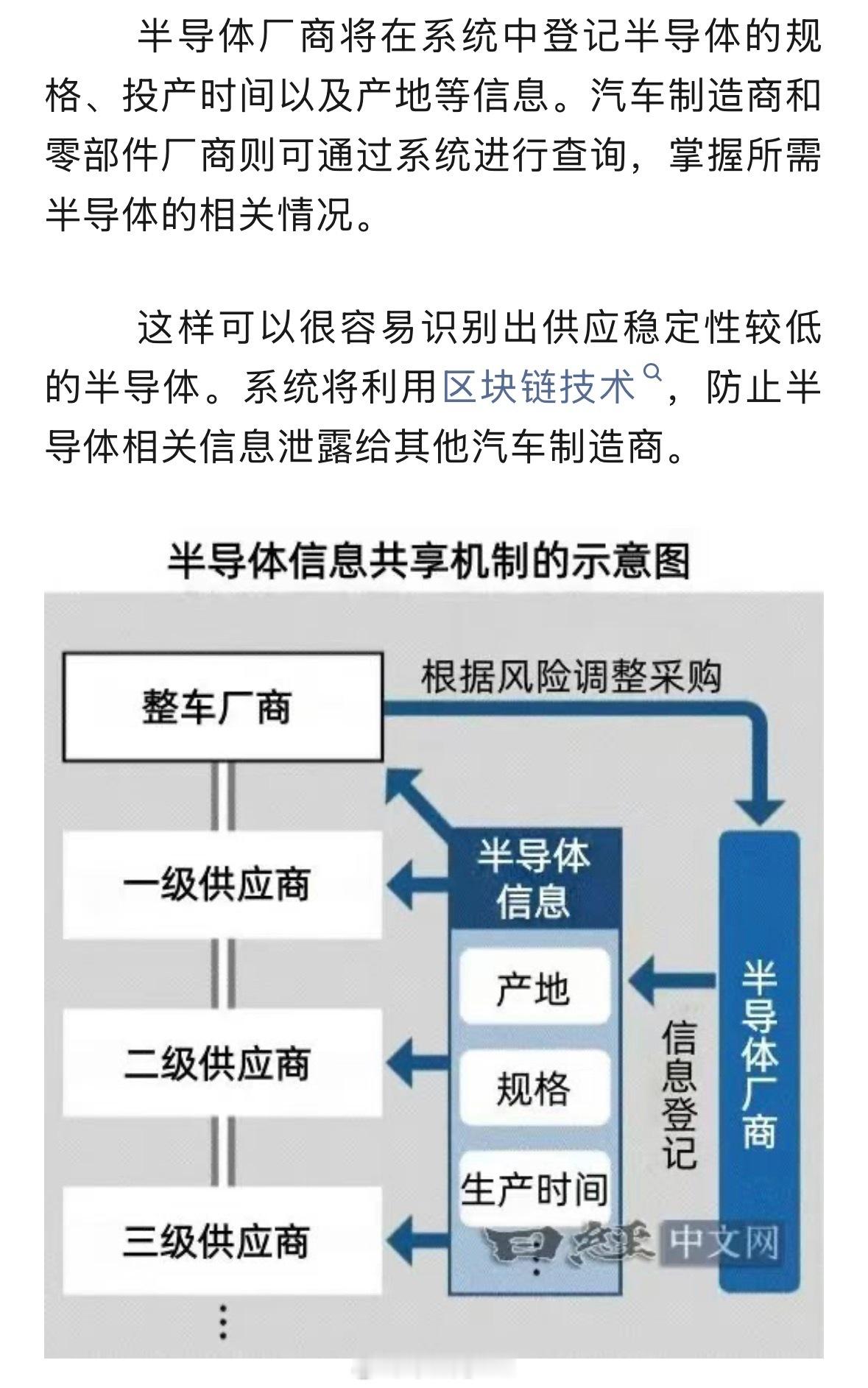 日本汽车行业这些年受到芯片影响很大(本身不像中国这里这么灵活),所以零部件工业协会计划建设一套共享半导体信息的系统芯片企业在系统中登记半导体的规格、投产时间以及产地等信息(这事情似乎中国也需要做一套)车企和零部件厂商则可通过系统进行查询,掌握所需半导体的相关情况,系统将利用区块链技术当然后续存储这块的价格飙涨,也让汽车完全暴露在半导体供应周期的影响之下,不能独善其身,也确实是要一个完善透明的芯片供应机制来对抗供应链的脆弱性大v聊车芯片