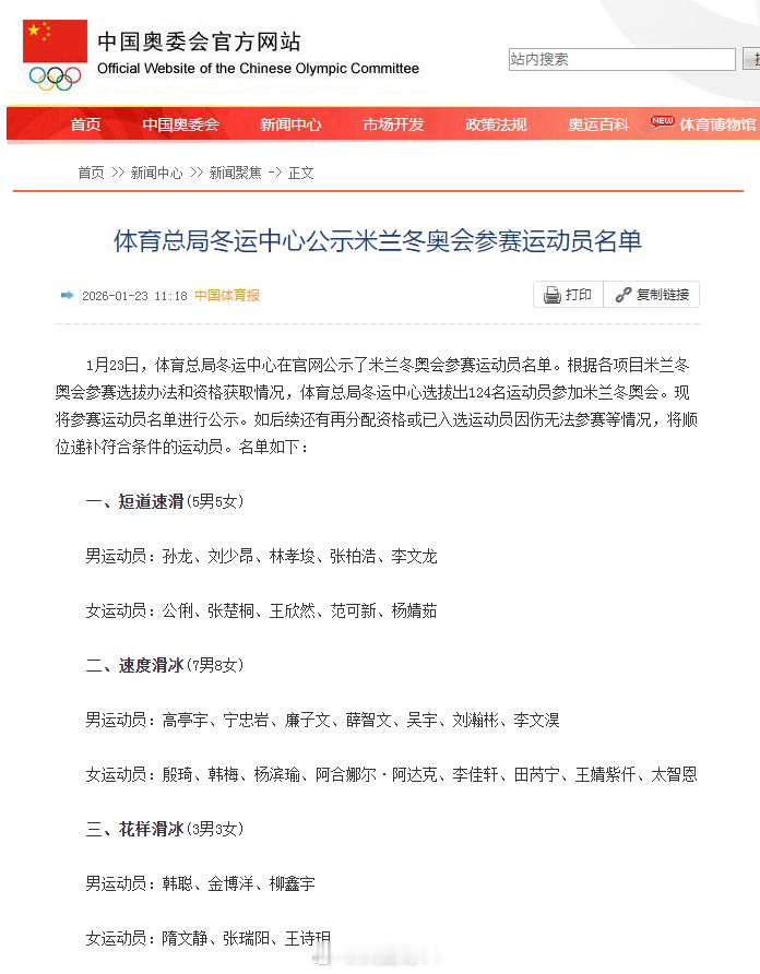 米兰冬奥中国代表团今天成立据中国奥委会官方网站显示第25届冬季奥林匹克运动会中国体育代表团今天(27日)正式成立,共有126名运动员参赛,其中包括了徐梦桃、齐广璞、谷爱凌、苏翊鸣、隋文静、韩聪等冬奥会冠军。米兰冬奥会中国体育代表团名单冬奥会