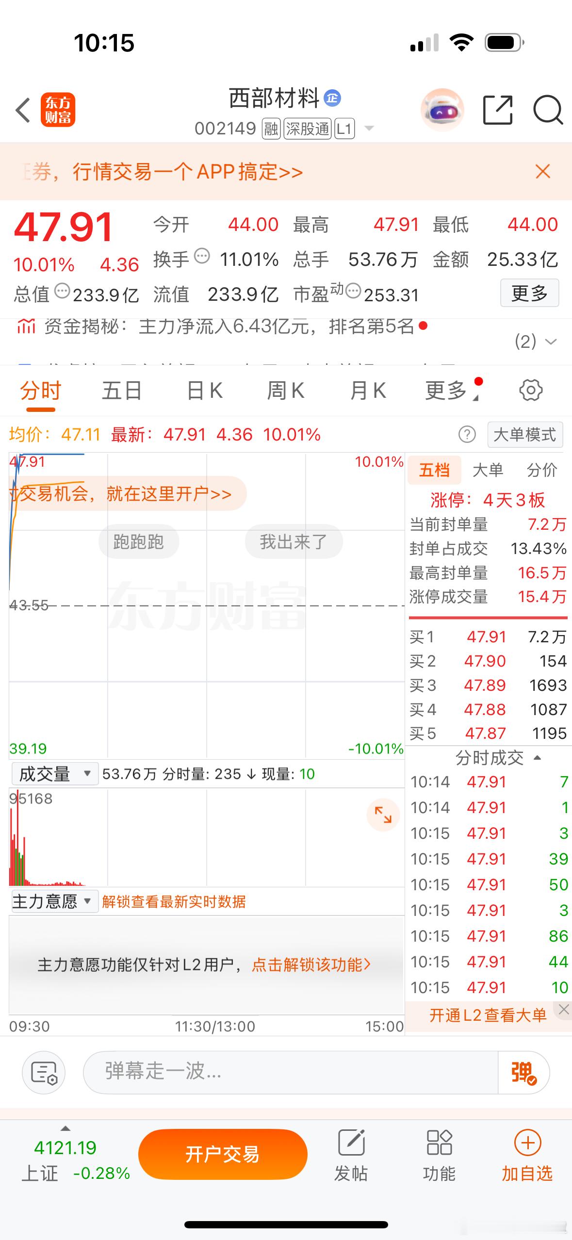 目前开盘缩量还是比较明显,贵金属与商业航天都有表现但是都感觉一般,贵金属早上有分歧又选择了回流。航天到现在昨天抗跌的西部材料板了,再升却炸了,贵金属主要还是三剑客,湖南白银差点地天板,白银有色,四川黄金三个抱团。