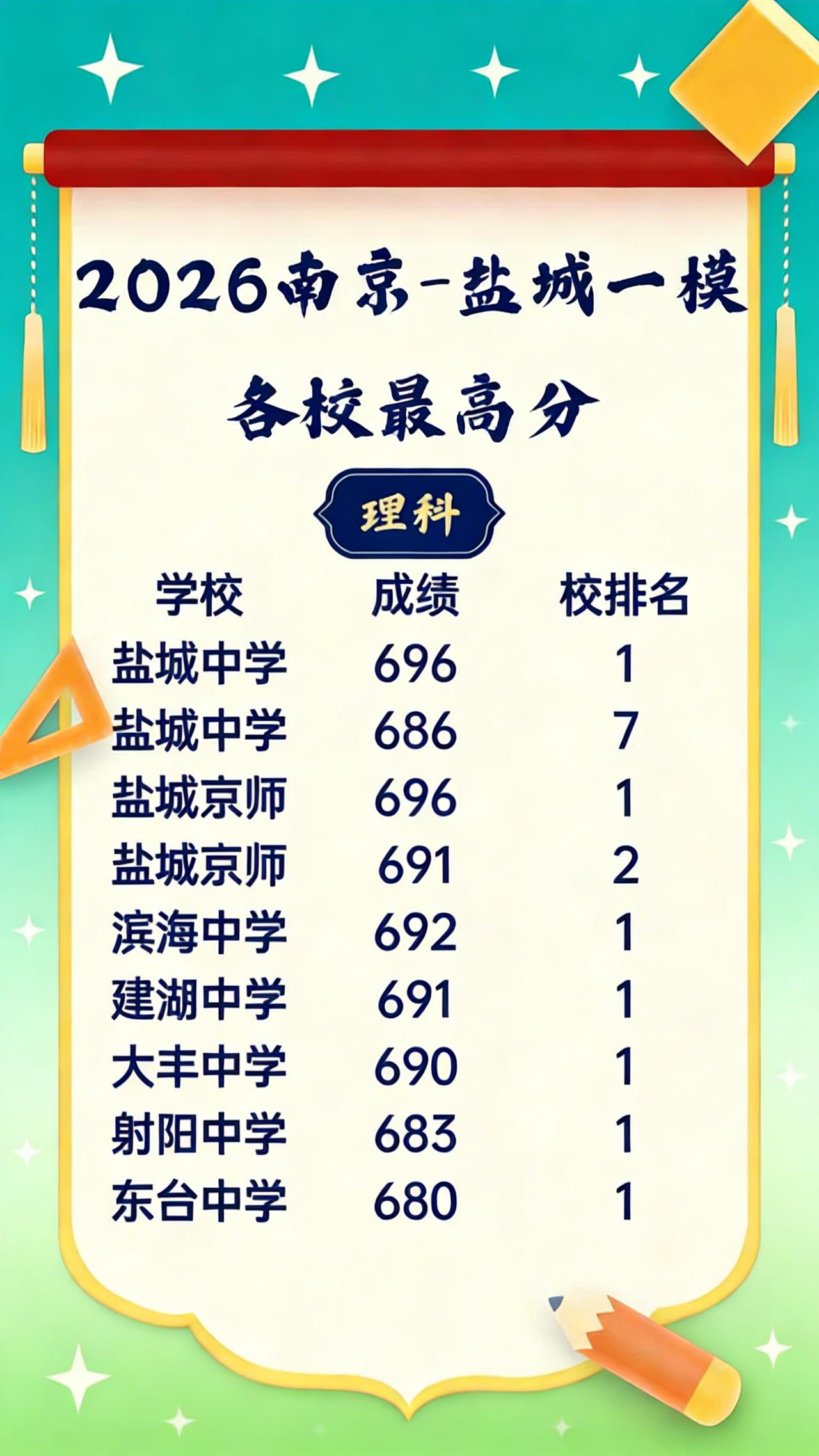 分并列第一💥 2026 南京盐城一模各校最高分直接卷到离谱!😱 盐城中学和京师同以696 分断层并列全市第一🏆,盐中 686 分都只能排第 7,这是什么神仙打架现场! 滨海中学 692 分、建湖中学 691 分紧随其后,大丰中学、射阳中学、东台中学也纷纷拿出 680 + 的高分📈,盐城学霸密度真的恐怖到窒息! 江苏高考的内卷程度直接拉满,这波分数让我直接看懵了🤯,盐中、京师的大佬们是开了挂吗? 26 届的宝子们,看完是不是瞬间不敢躺平了?快对照自己的分数,看看能冲哪个档位!💪 南京盐城一模 江苏高考 高三模考 盐城学霸 26 届高考