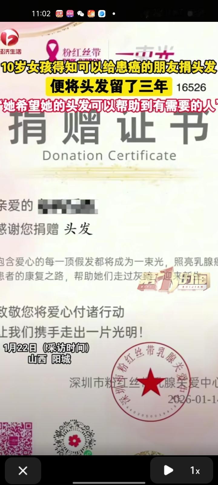 1月22日,晋城市阳城县。十岁女孩得知可以给患癌的朋友捐头发,就开始留长发,一留就是三年。孩子妈妈称,今年带她去剪的时候,以为她会很伤心,但事实上她很期待,希望她的头发可以帮助有需要的人