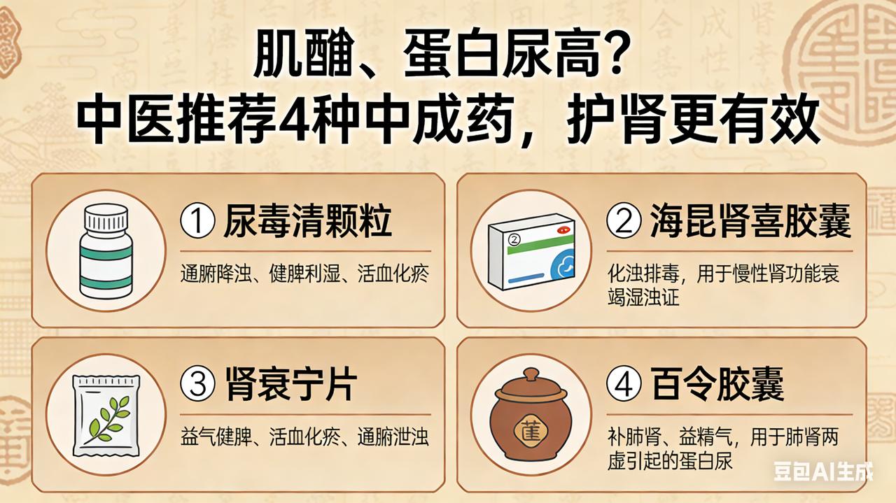 肌酐、蛋白尿高?中医推荐4种中成药,护肾更有效 4种护肾中成药:精准降肌