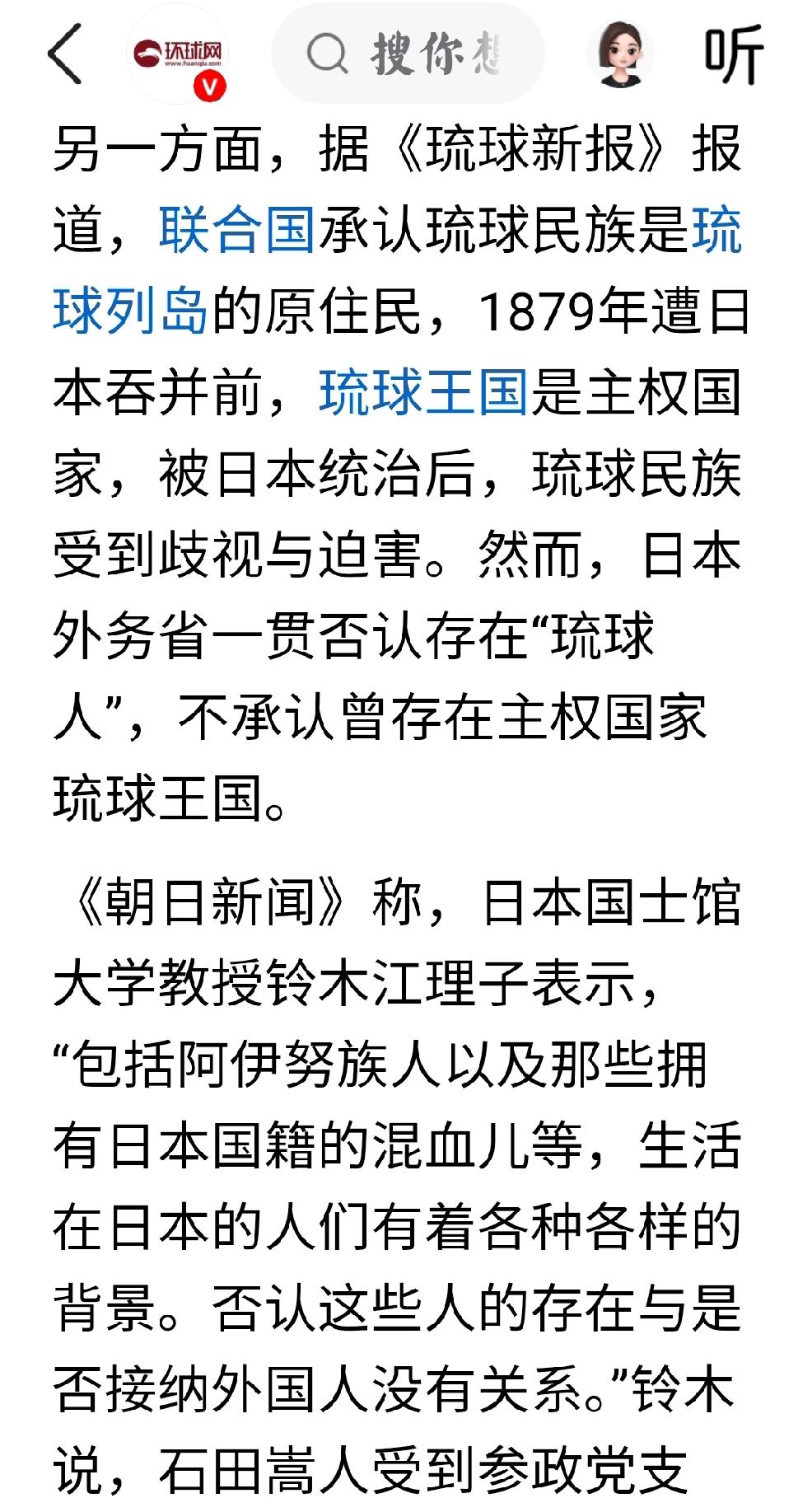 阿依努族,琉球民族 根据环球网,日本朝日新闻1月27日报道,1月25日当
