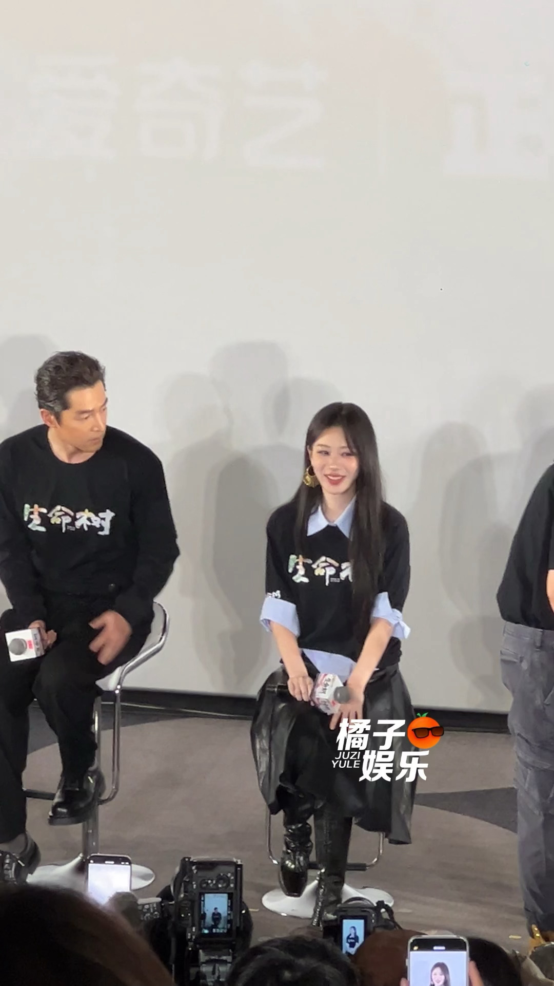 凳子太高了坐上有点不稳,调低了之后紫妹:“腿不够长”,然后热心地帮其他人看凳子哈哈哈哈哈杨紫说自己腿不够长电视剧生命树生命树超前看片反馈