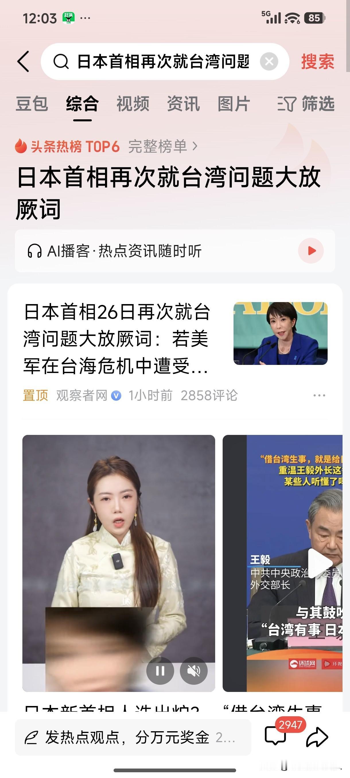 日本首相在不归路上加速前进! 1月26日,日本首相高市早苗在参加电视节目时,再次就台湾问题大放厥词。她宣称,如果美军在台湾危机中遭受攻击而日本未能做出回应,对日本至关重要的美日安全同盟将瓦解。 高市早苗绝对是一个不折不扣的军国主义者,高市早苗能够继续连任那将是日本最大的不幸之事。日本胆敢再次对大国发动战争,日本将会被从地球上磨掉,日本国将不复存在!