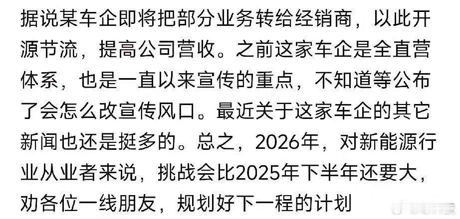 某车企即将把部分业务转给经销商,以此开源节流,提高公司营收,最近关于这家车企的其