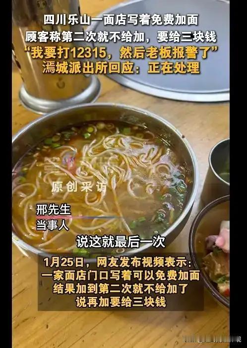格局决定高度,心胸决定未来——一碗面引发的启示录 人生如同一碗面,汤浓面香,滋味无穷,但若只为一时之快,便会错失更宽广的天地。四川乐山,一座山水相依、文化底蕴深厚的城市,发生了一件令人深思的事情。 故事的主人公是一位外地游客,他满心期待地来到当地一家面馆。招牌上赫然写着“免费加面”,这让他心里暖洋洋,仿佛吃到了人间美味。点了一碗面,果然不虚此行,面香四溢,令人垂涎三尺。可是,吃着吃着,感觉还不够过瘾,于是续了一次面。老板笑着点头,继续端上热腾腾的面条。 然而,到了第三次续面时,老板脸色骤变,语气变得严厉:“不好意思,这次要收费了。”男子一听,觉得被“套路”了,心里不禁发出疑问:明明写着免费加面,怎么能变卦?于是双方争执不休,甚至还闹出了老人骂骂咧咧、要动手的场面。 这件事情看似琐碎,却折射出一个深刻的道理:**格局决定高度,心胸决定未来。**一个只为眼前利益、斤斤计较的人,注定无法站得更高,看得更远。试想,如果这位男子能换个角度看问题,理解老板的难处,或许会发现,真正的健康不仅是身体的强壮,更是心灵的宽广与包容。 健康的真谛,正如古人所说,“内外兼修”。内在的健康,是心态的平和、感恩的心;外在的健康,是身体的强健。只有内外双调,才能真正拥有“身心康泰,志存高远”的人生。 生活中,我们常常遇到类似的“小事”,其实都是锻炼心胸的良机。宽容与理解,是打开幸福之门的钥匙;感恩与善良,是人生最美的底色。正能量如春风化雨,润物无声,带给我们无穷的力量。 这碗面,或许只是一场误会,但它提醒我们:**不要因一时的小利而失去更大的格局。**只有心怀感恩、胸怀宽广,才能在风云变幻中稳如泰山,笑看人生百态。 让我们都成为“格局大、心胸宽、健康好”的人,用感恩之心迎接每一天,用大健康理念照亮未来。毕竟,真正的胜者,不是占便宜的人,而是懂得用心、用情、用智慧去经营人生的人。 人生如面,调料虽多,味道才是关键。愿我们都能在生活的面碗中,品出大格局的滋味,活出精彩纷呈的生命! 对格局的理解