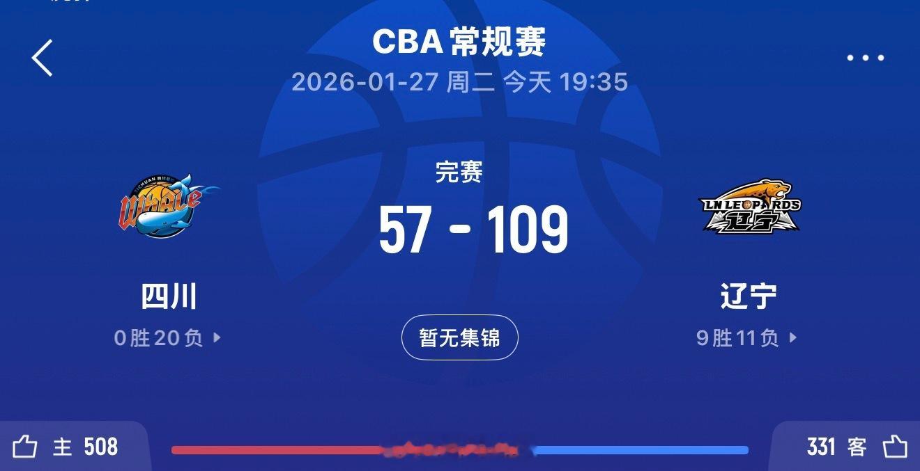 换帅后,辽宁男篮客场109比57战胜四川男篮,创造出辽篮本赛季最大赢球差,赛后四川年轻小将段睿骐社媒发文:“无敌了”。四川队本赛季未尝一胜,目前是0胜20负,位列榜末。四川男篮vs辽宁男篮四川男篮阿才说球CBA辽宁男篮