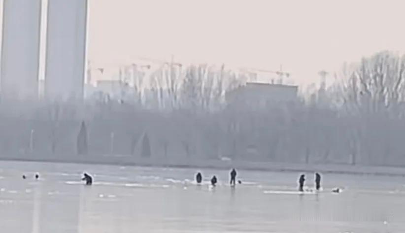 事发滨州蒲湖!危险! 网友投稿:近日,在山东滨州蒲湖冰面,又出现了多名市民玩耍和钓鱼。 在此提醒:冰面虽然好玩,但冰层厚度不一,还是一定注意,安全第一!