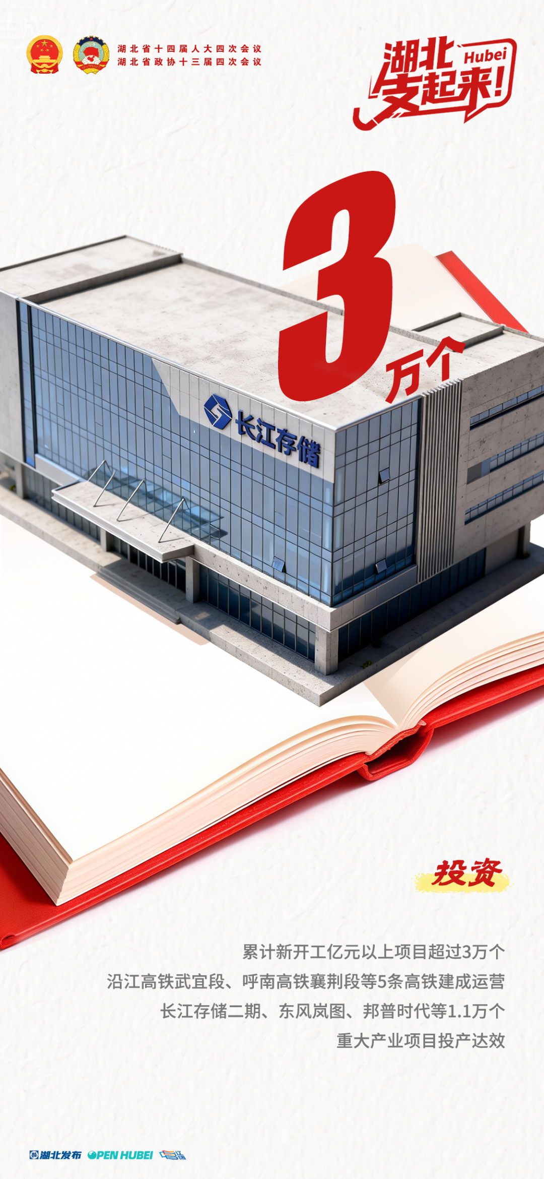 累计新开工亿元以上项目超过3万个,沿江高铁武宜段、呼南高铁襄荆段等5条高铁建成运营,长江存储二期、东风岚图、邦普时代等1.1万个重大产业项目投产达效。