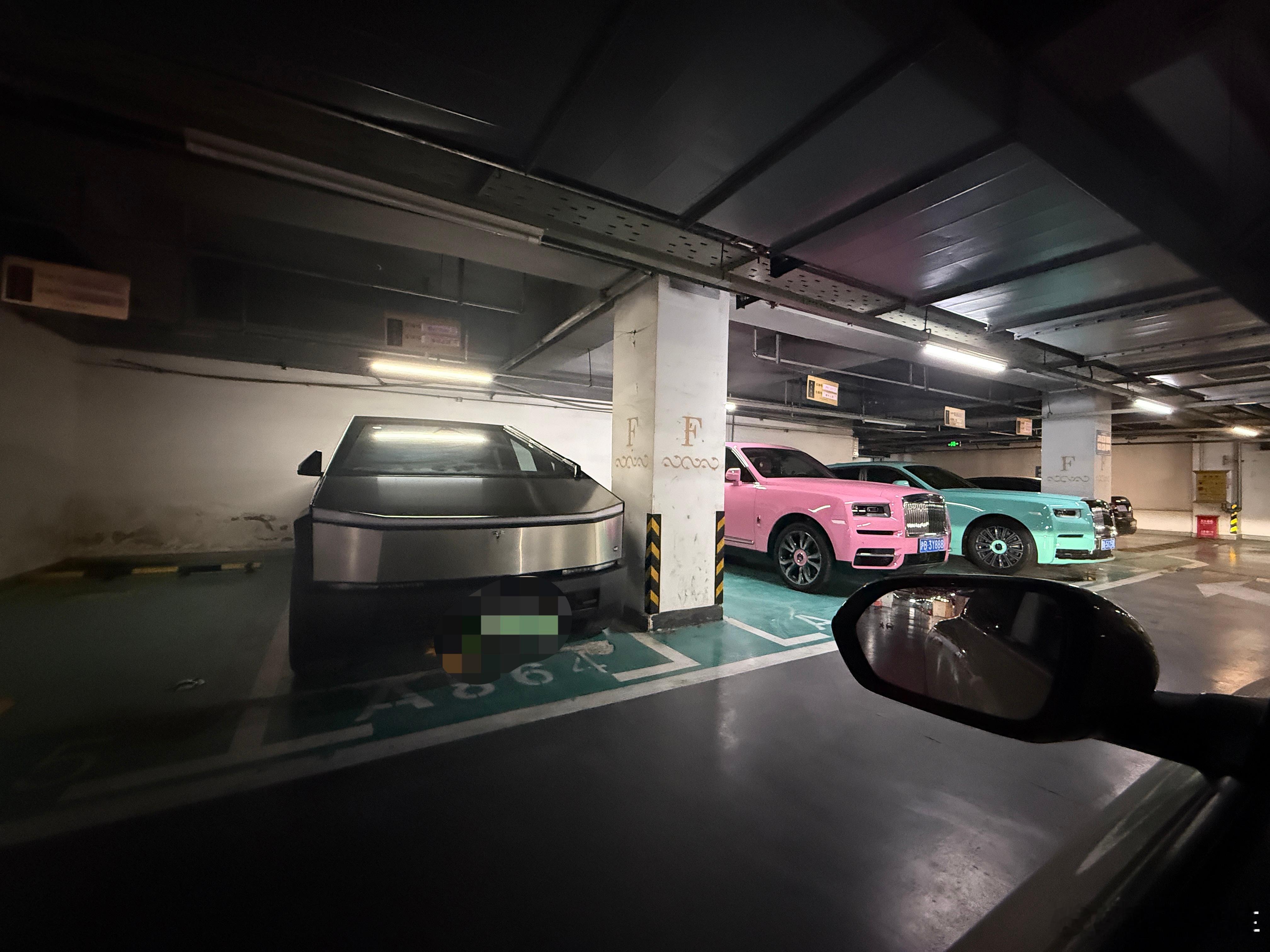 第一次看到真正上了牌的特斯拉私家车,感觉比旁边的红红绿绿的车更上档次。
