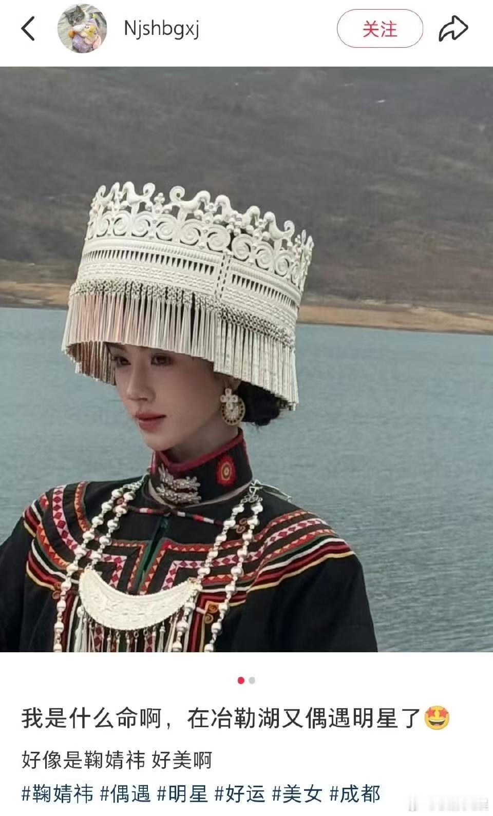 鞠婧祎彝族造型路透网友在冶勒湖偶遇鞠婧祎鞠婧祎彝族造型路透,好好看,好美