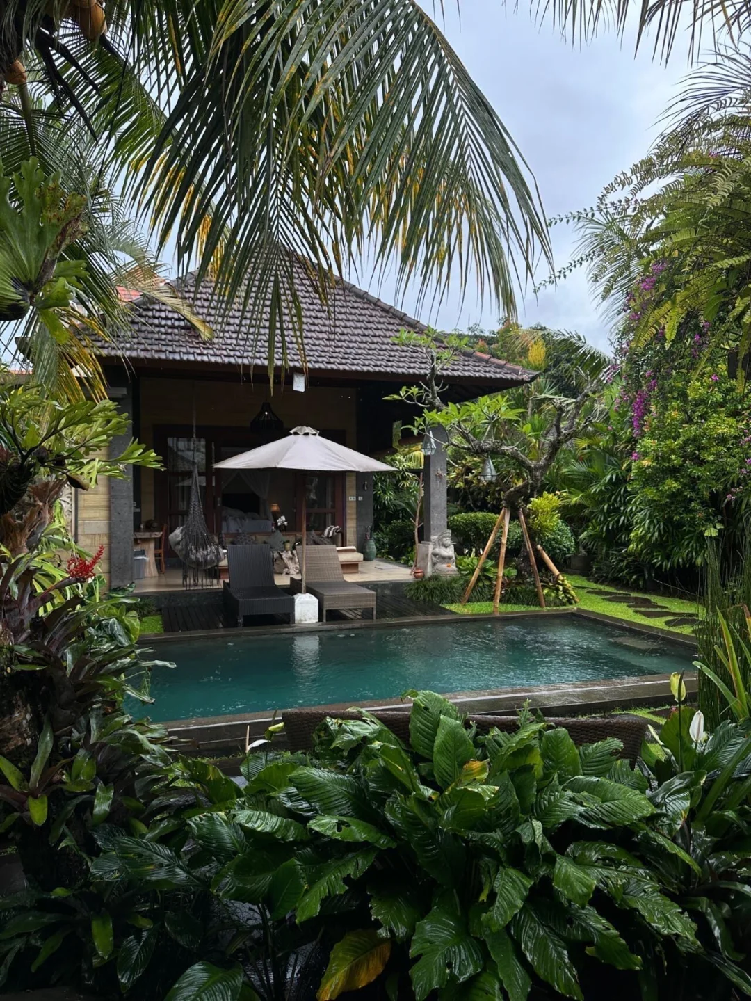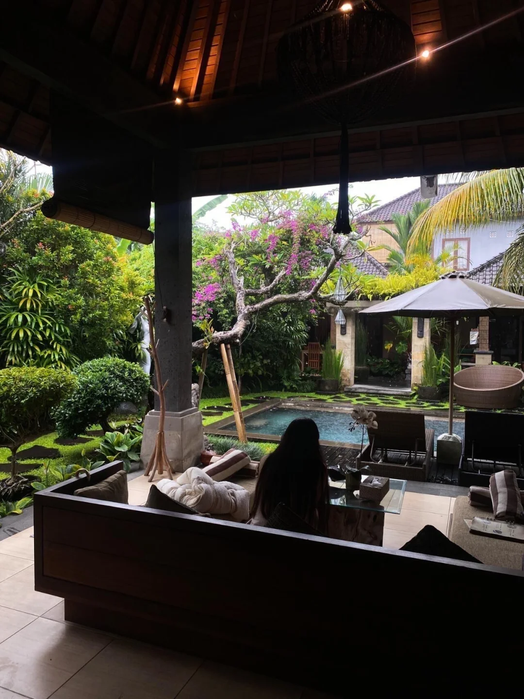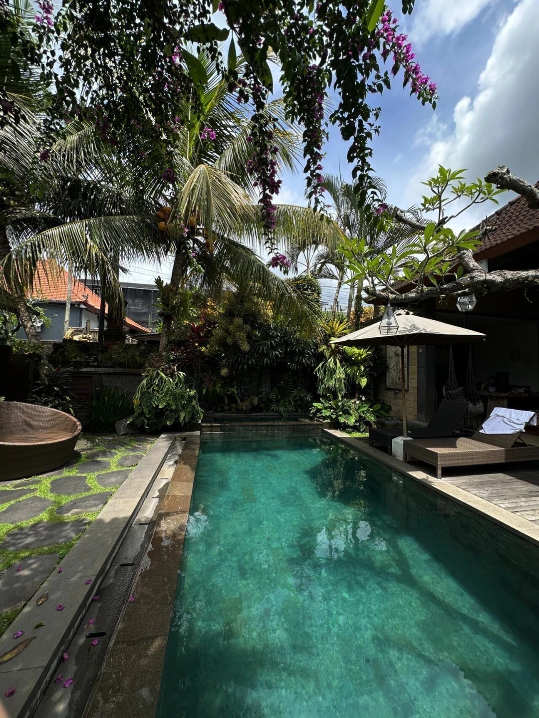 就是想象中,应该在巴厘岛住到的dream house, 传统印尼建筑,隐藏在郁郁葱葱的热带雨林之中, 炎热、潮湿、幽深、宁静,一下子就有了旅行感。 床铺干净柔软,每一晚都是酣畅的入眠, 庭院里泳池像湖水一般碧绿, 周围是各种树木,有的树上有花, 下雨的时候会被打落在庭院里,美的让人心醉。 这间[两颗心R]Airbnb的空间也很大, 有3个卧室,3个卫生间,最多可以住6人, 早上还提供丰富的早餐,非常好吃。🍳 位置也很好,就在乌布, 骑摩托车前往乌布市中心才3分钟, 走路也就10多分钟。 🥥图片来源于博主已获得授权使用,请勿误判!