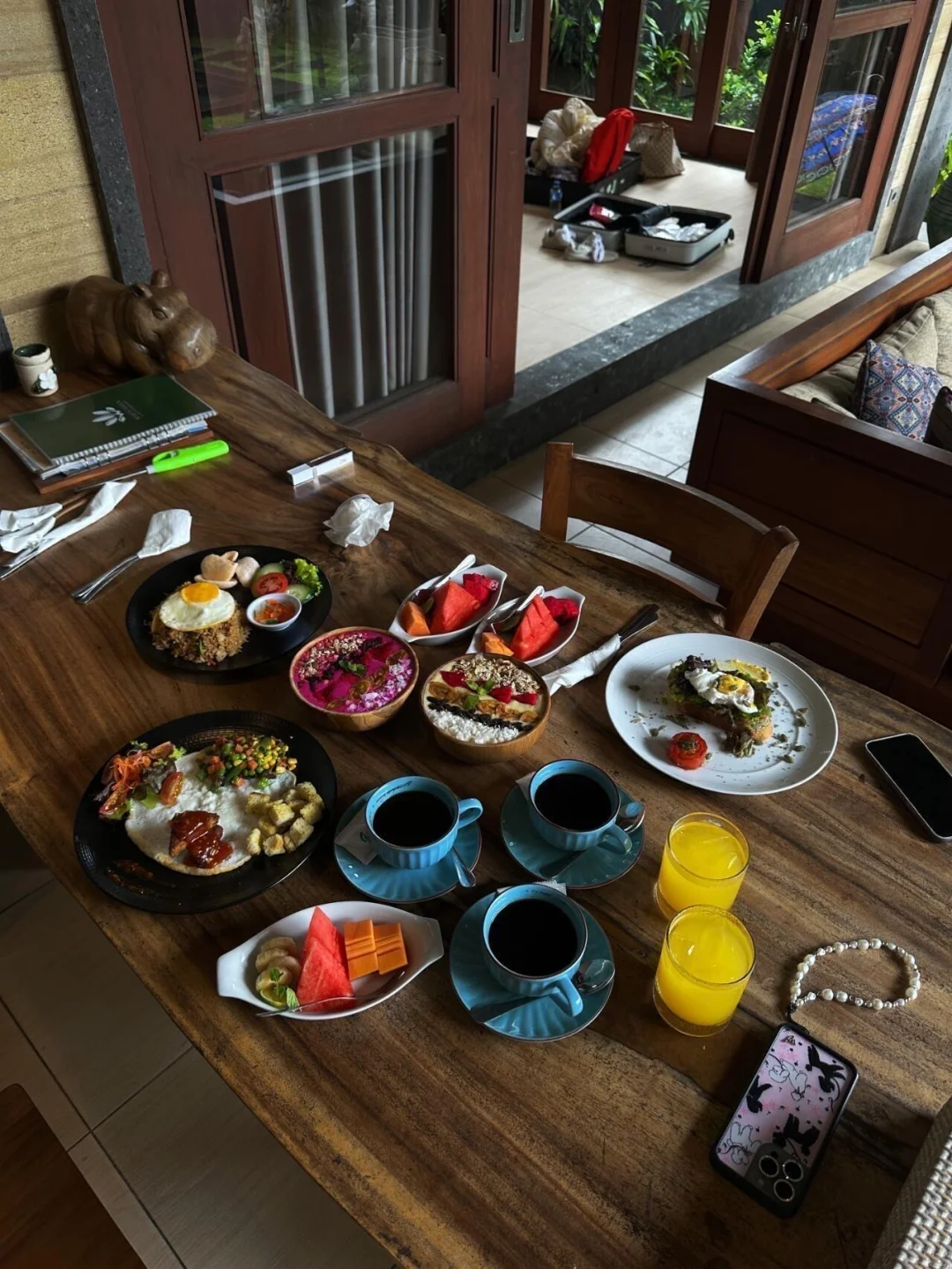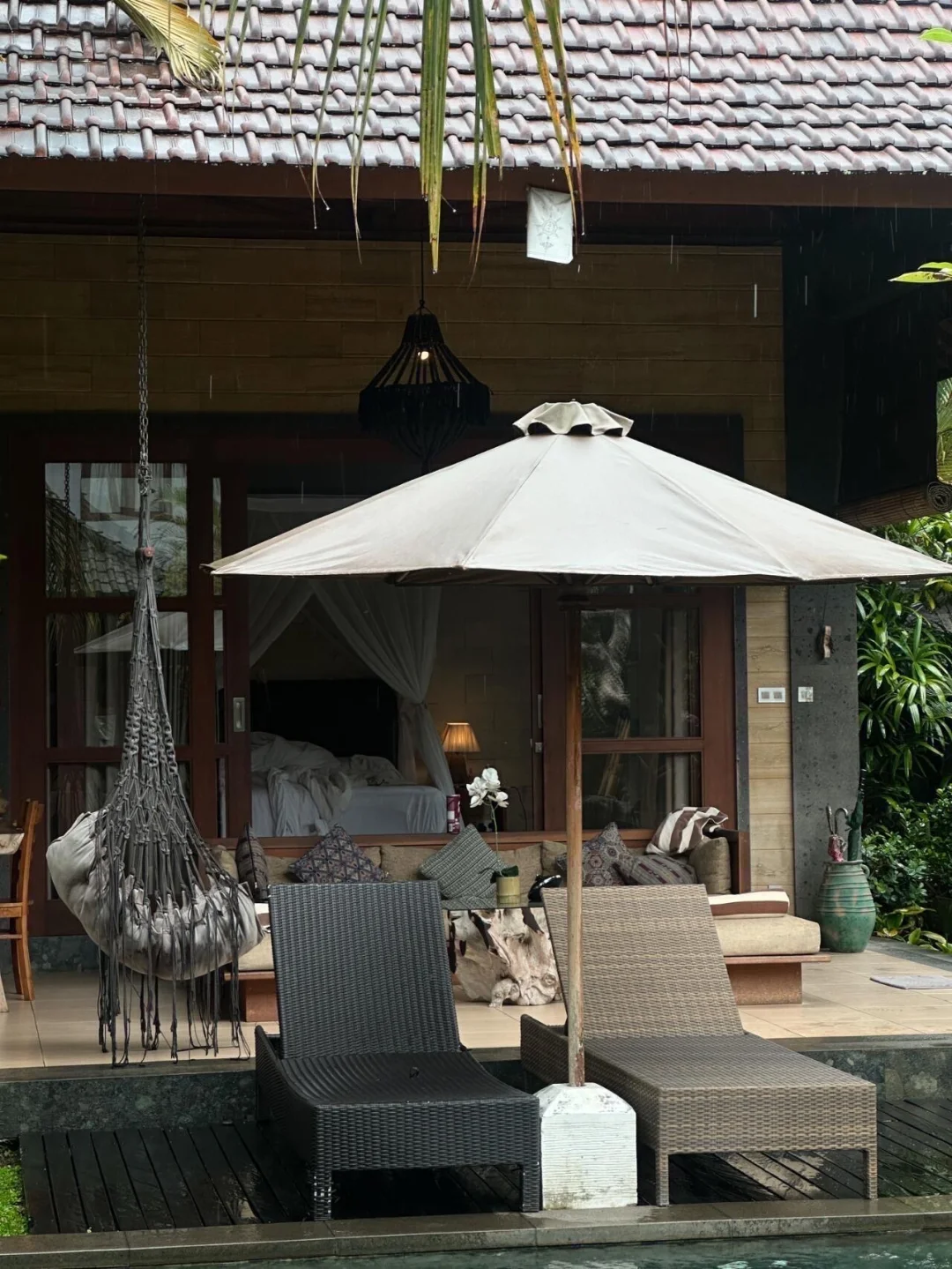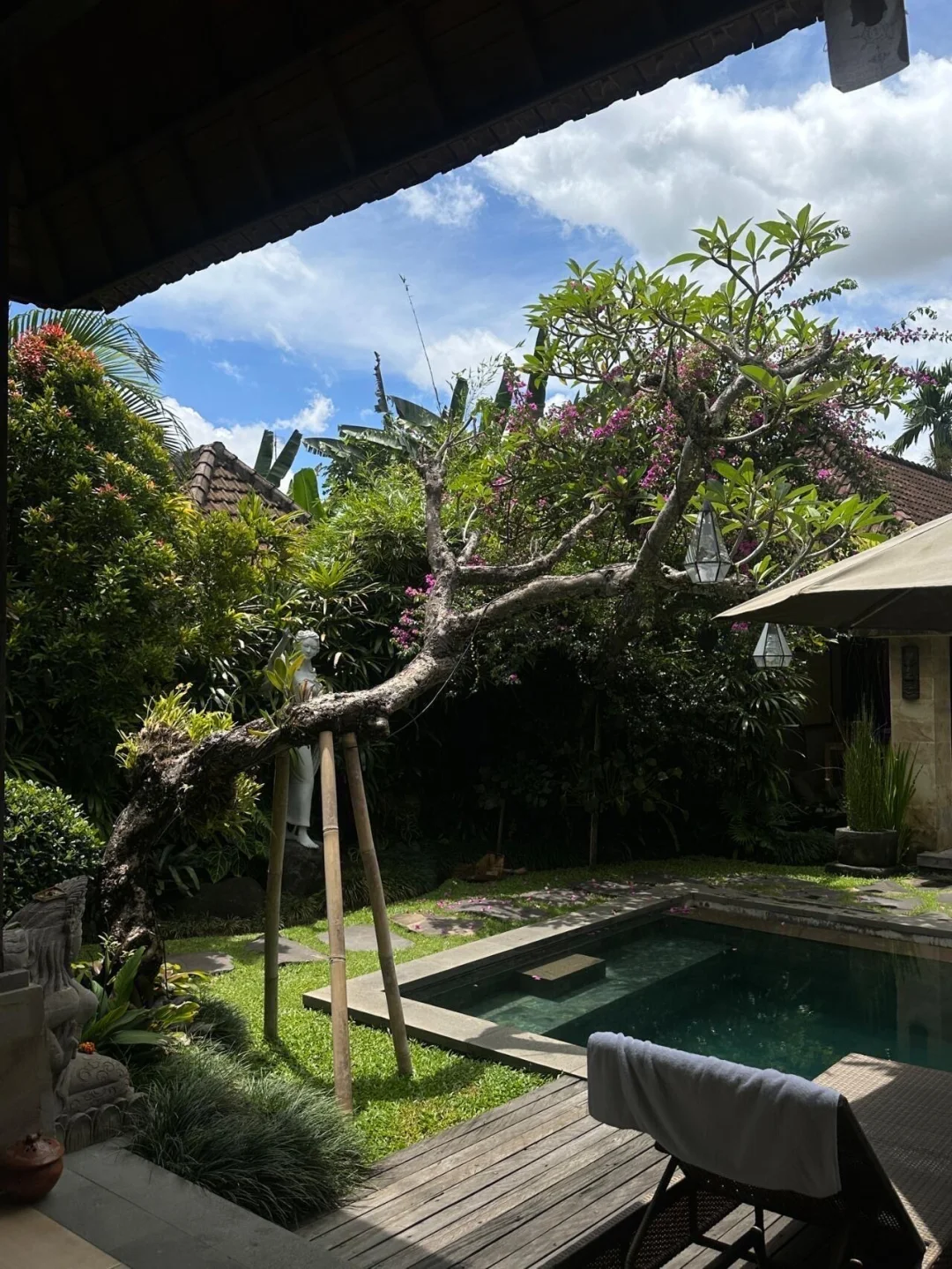 就是想象中,应该在巴厘岛住到的dream house, 传统印尼建筑,隐藏在郁郁葱葱的热带雨林之中, 炎热、潮湿、幽深、宁静,一下子就有了旅行感。 床铺干净柔软,每一晚都是酣畅的入眠, 庭院里泳池像湖水一般碧绿, 周围是各种树木,有的树上有花, 下雨的时候会被打落在庭院里,美的让人心醉。 这间[两颗心R]Airbnb的空间也很大, 有3个卧室,3个卫生间,最多可以住6人, 早上还提供丰富的早餐,非常好吃。🍳 位置也很好,就在乌布, 骑摩托车前往乌布市中心才3分钟, 走路也就10多分钟。 🥥图片来源于博主已获得授权使用,请勿误判!