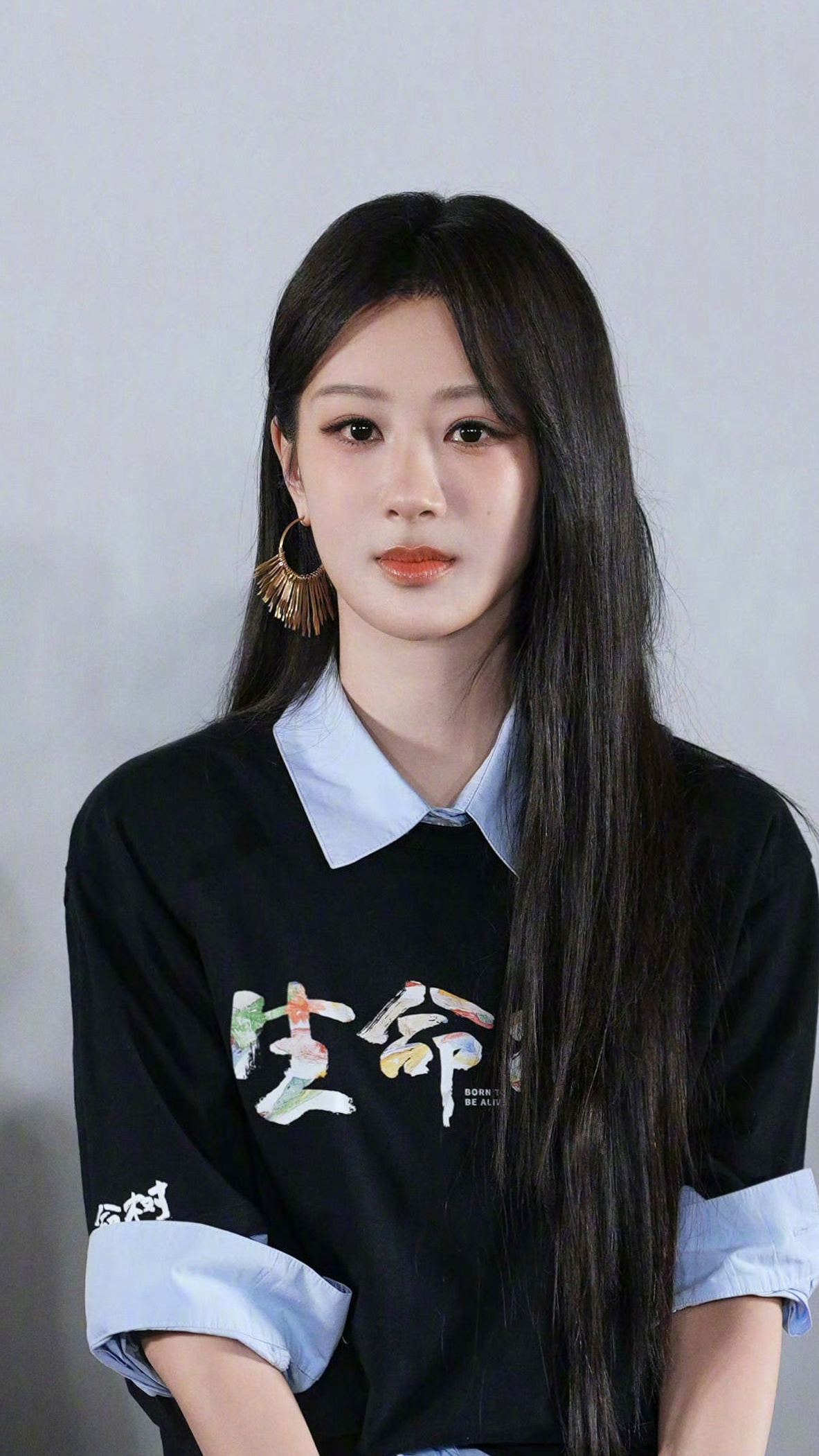 金鹤龙给杨紫化的这个妆真的可以,全网基本都是夸的~杨紫文化衫配黑长直