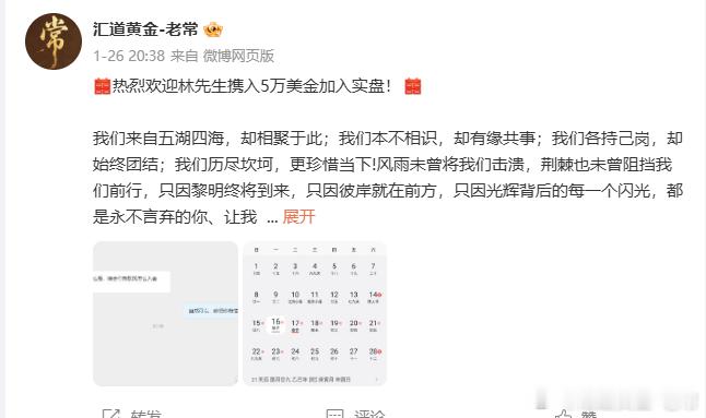 【(实盘林先生二天实现翻仓,今天更是狂揽赚5万多美金!】昨日晚上8点钟林先生完成了全部的入金,并且表示当天就要跟上老常的实盘操作,过程中我们配合的十分完美,林先生的执行力也很强。再者就是最近的行情真是太完美了,不仅我们合作期间内一单都没损,相反今天还实现了一天狂赚5万美金的壮举,说厉害一些,那就是一天翻仓!林先生选择加入的时机也很对,近期是个好日子,赶上的行情也给力,不然像震荡行情的话,那么我们空有一身抱负也可能是无处施展,但近期的行情我们拿捏的非常到位,看准了就干!试问整个投资市场,有谁能如老常这般耿直,喊单从不模棱两可,实盘微博统一的分析师?我只用提前布局或现价单来证明自己,行与不行交于你们!只要你选择老常那一刻相信属于你的利润不会少!不要问能不能,行不行,一问就是错过最好最合适的稳赚行情,专业且最负责任的高级分析师在为你铺路,下一个资金账户增值甚至翻倍翻仓的就是你黄金金价