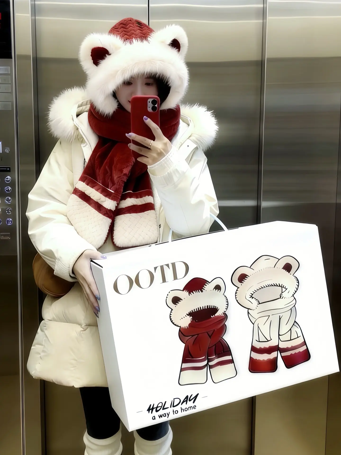 什么都是假的 只有男朋友给我买的可爱小熊耳朵一体帽围巾🧣才是真的礼物围巾惊喜和礼物都来自爱你的人冬日仪式感