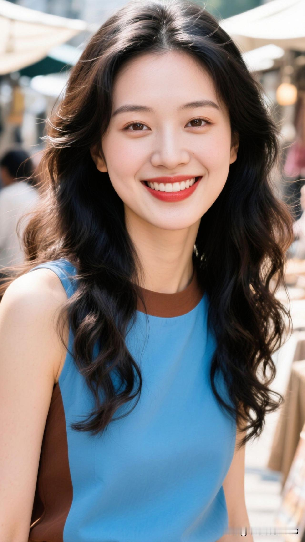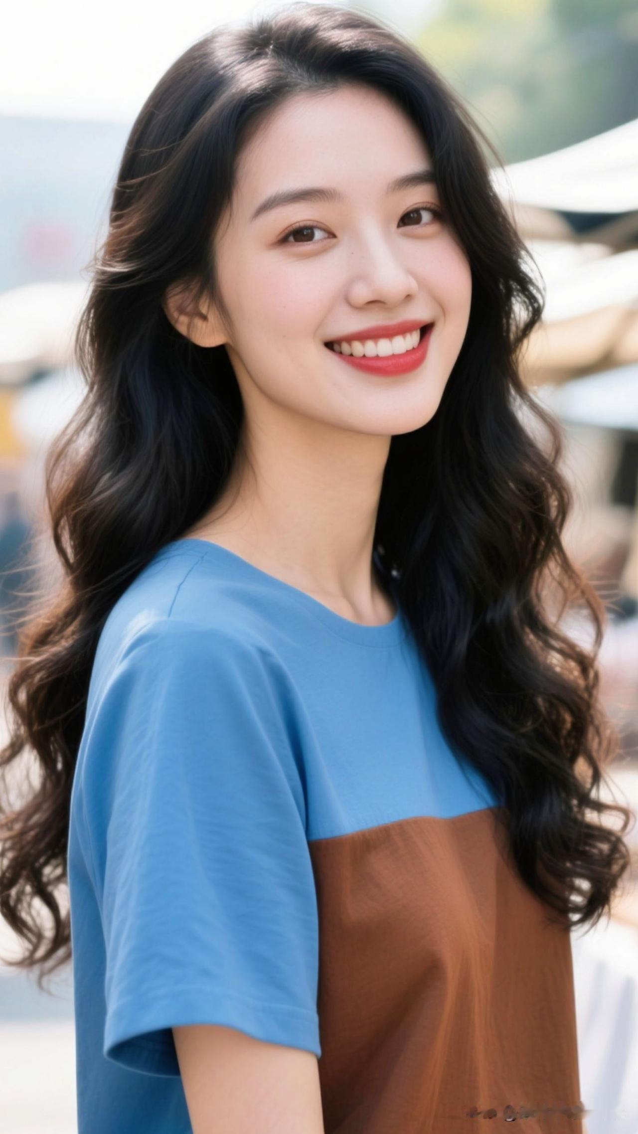 🌊蓝棕撞成海与岸的诗,卷发漾着风的絮语,笑起来时,连空气都浸着治愈的甜。淡雅