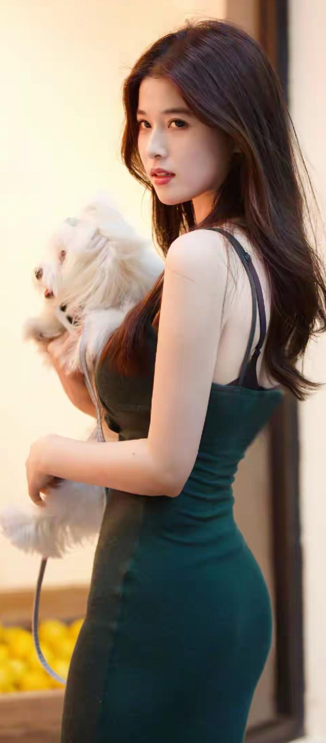 这姑娘穿着红色连衣裙好漂亮!