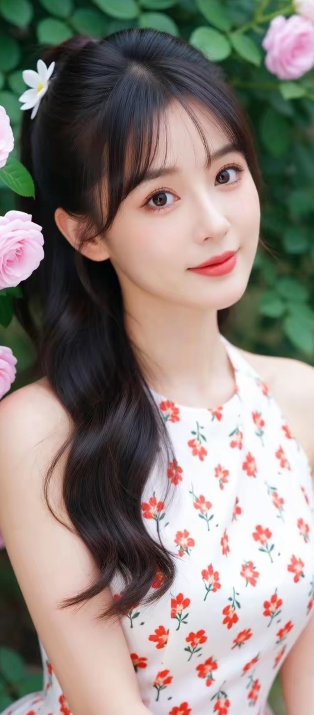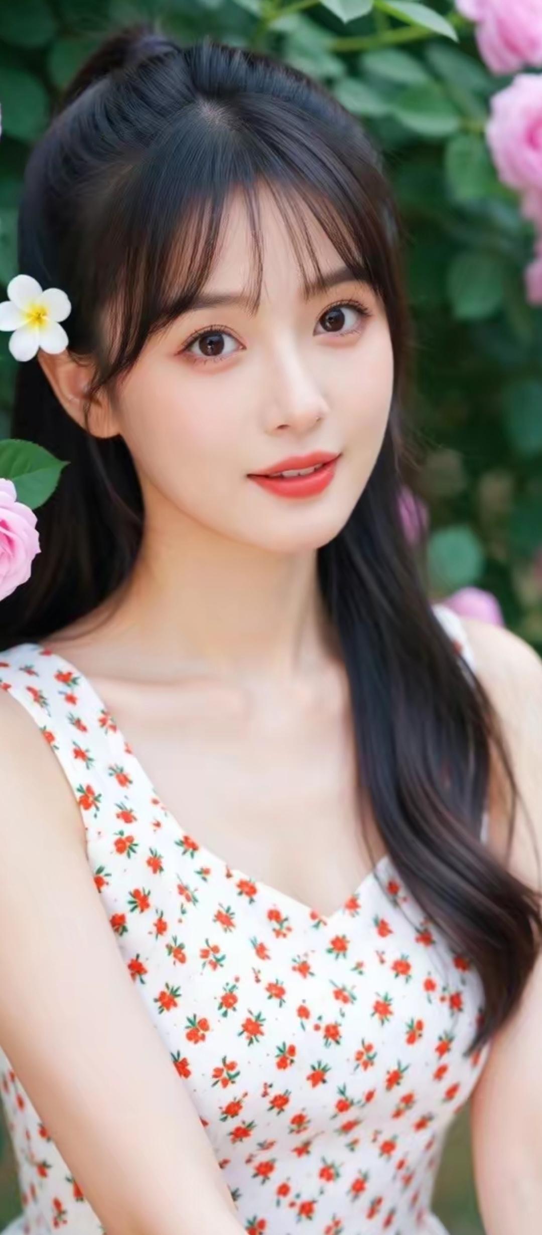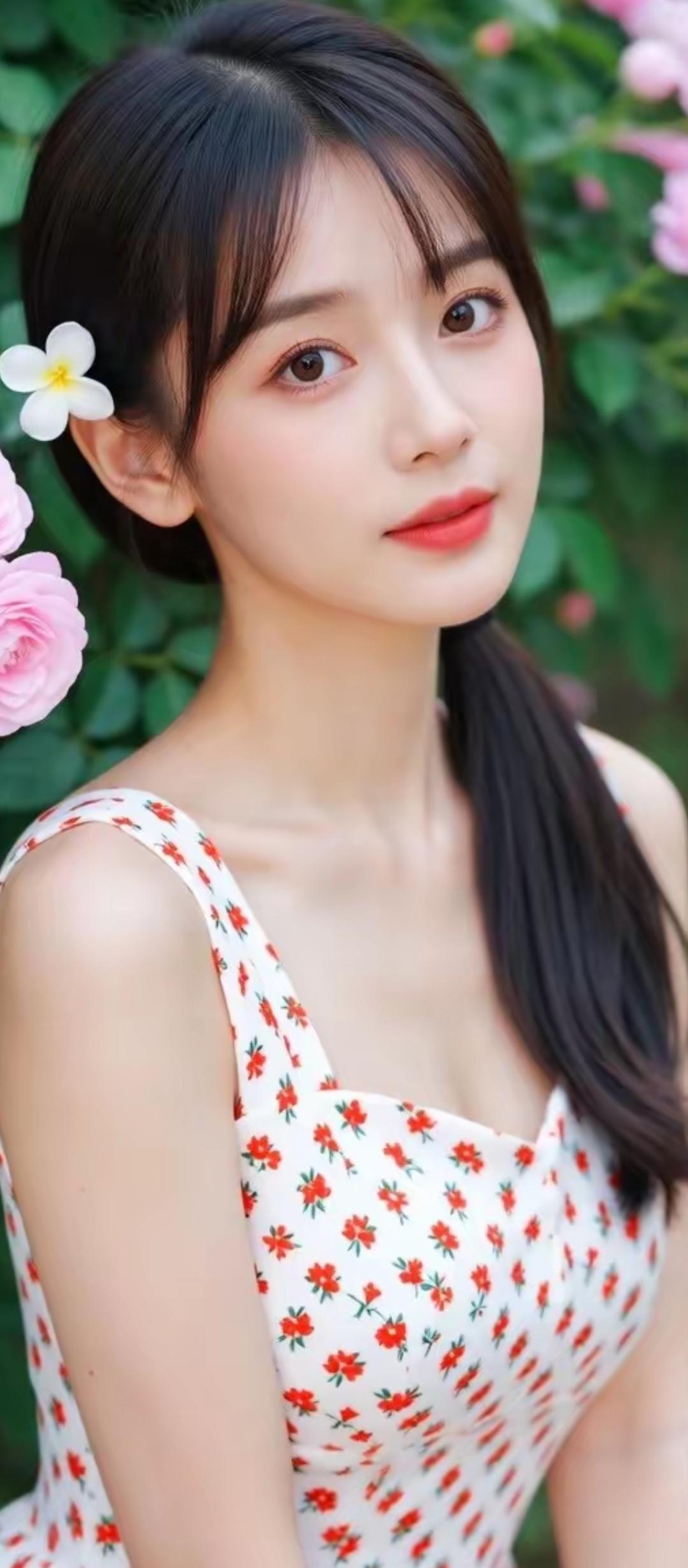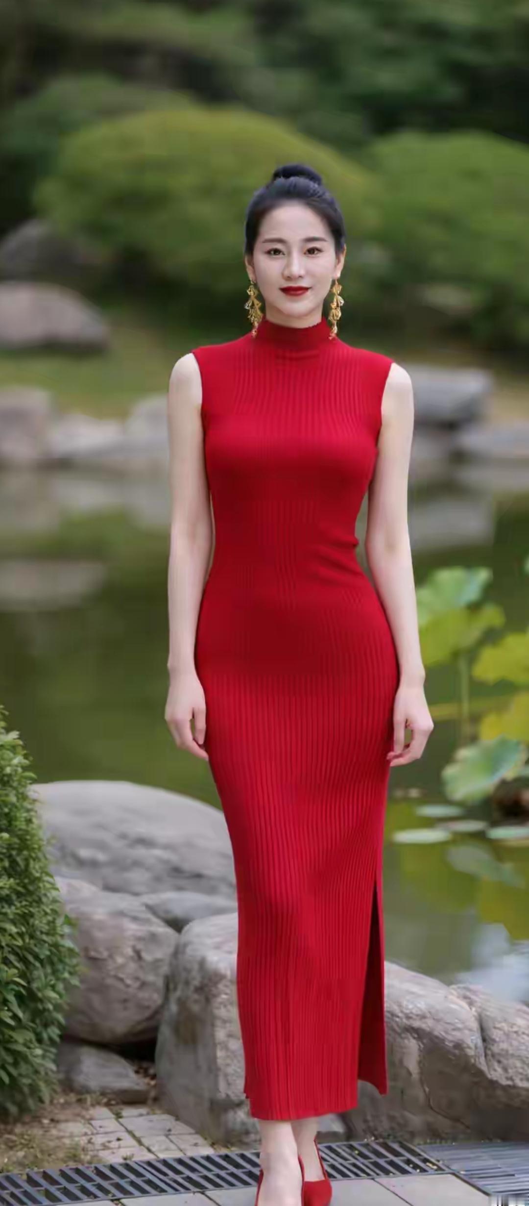 这姑娘穿着红色连衣裙好漂亮!