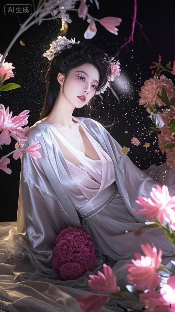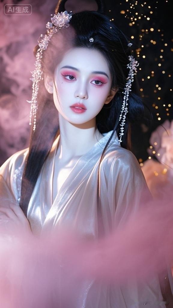 仙气飘飘的少女,银光闪闪的裙装,梦幻般的氛围