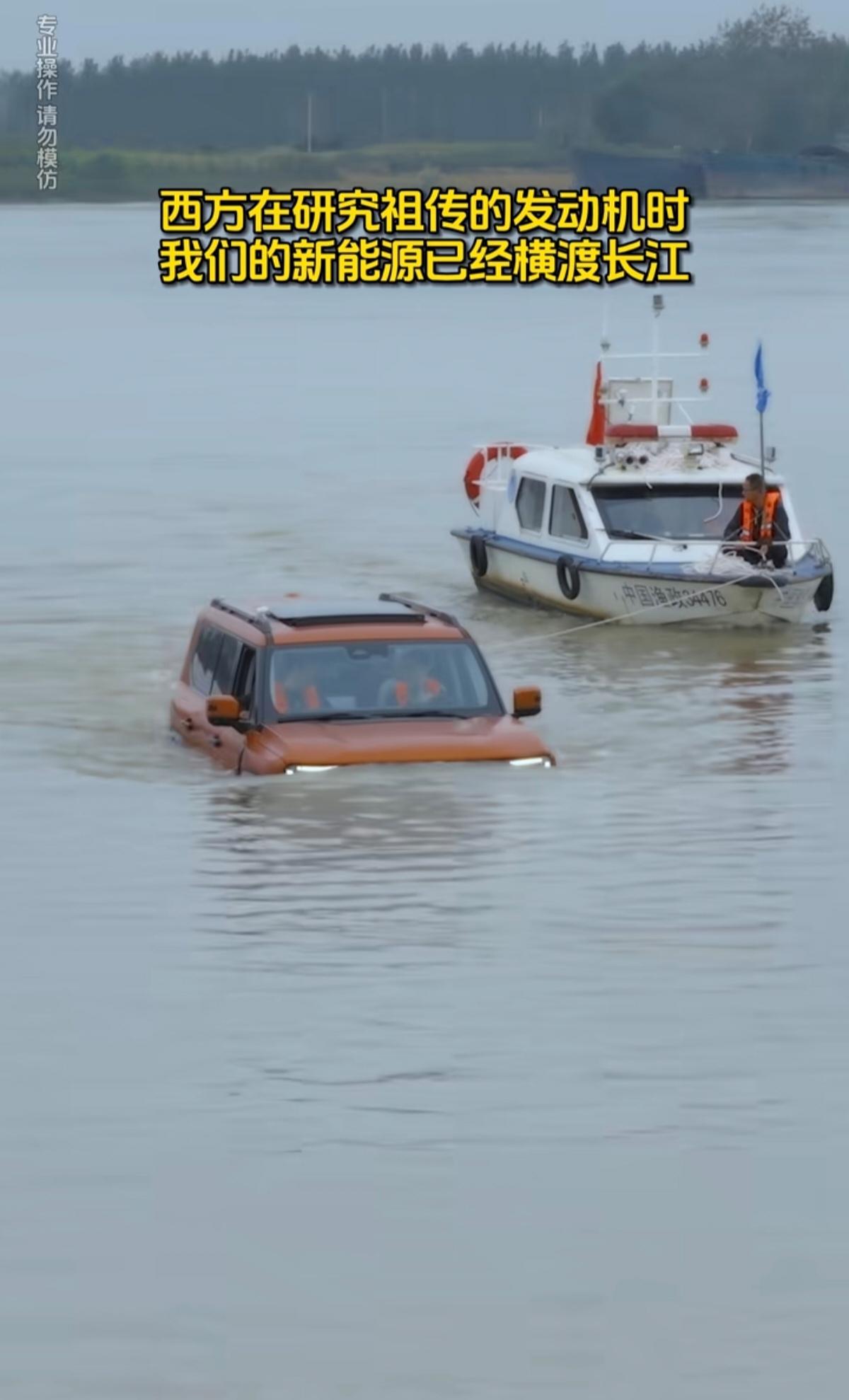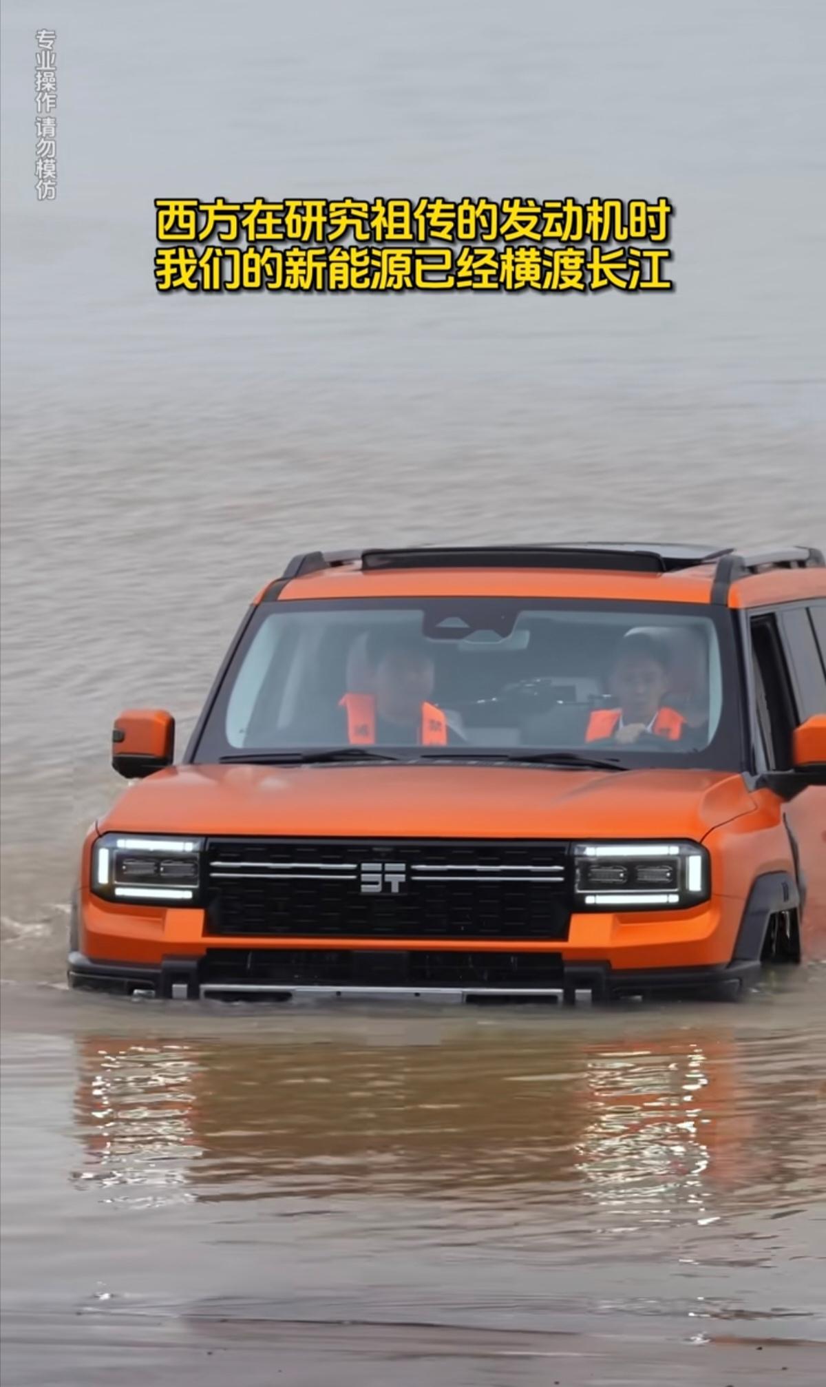 国产新能源现在是什么水平?[赞] 之前仰望U8越野场地涉水行驶,并没有激起太多浪花, 直到我今天看见这台橙色SUV,我真是大为震惊, 如果能在日常驾驶中就横渡长江,那是不是算得上真正的水陆两栖家用车了[思考] 那这样一来,涉水行驶将是未来新能源重要战场, 也就是说保险公司在车损险的涉水风险中将稳操胜券[赞][招财进宝][招财进宝] 硬派越野+新能源+水陆两栖,可玩性不可小觑,将再次改变人们的出行方式![思考] 期待新能源解锁更多技能, 最后谁能告诉我,这车标是哪个优秀的小可爱?[思考]
