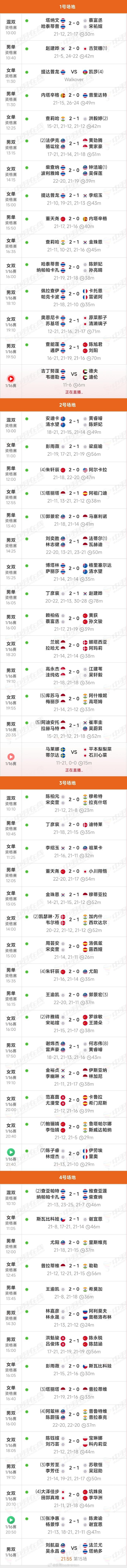 2026泰国大师赛 首日国羽正赛1胜4负,小将太不禁打了 2026年泰国羽毛球大师赛,1月27日结束了首个比赛日的争夺,这天主要进行的是资格赛和部分正赛。国羽资格赛2人晋级,正赛却1胜4负。小将们太不禁打了,尤其是男双。陈旭君/刘阳、黄荻/孙文骏都未能闯过首轮关,陈喆涵/陈永锐更是没通过资格赛。女双也没好到哪里,罗徐敏/王漪朵、坑姝良/李华洲也遭遇了一轮游。 胜5场,资格赛4场 男单资格赛 董天尧22-20 21-17 小川翔悟 男单资格赛 董天尧21-17 21-16 内塔辛格 男单资格赛 朱轩辰 21-18 22-20 阿尔卡拉 男单资格赛 朱轩辰 21-16 21-14 尤阳 女双 鲍骊婧/李怡婧 21-12 21-5 鲁塔帕尔娜/斯威达帕纳 负5场,资格赛1场 男双资格赛 陈喆涵/陈永锐 21-17 19-21 19-21 洪魁骏/吕俊玮 男双 黄荻/孙文骏 17-21 19-21 赖柏佑/蔡富丞(中国台北) 男双 陈旭君/刘阳 21-16 19-21 16-21 查能蓬/通萨 女双 罗徐敏/王漪朵 15-21 17-21 许雅晴/宋祐媗(中国台北) 女双 坑姝良/李华洲 11-21 18-21 田部真唯/大泽佳步 外协会场次中,韩国男单赵建晔1比2不敌对手,第3局打到了28比30;还有屡败屡战的崔率圭/吴蔚昇也止步首轮。1月28日完整赛果请参阅图片