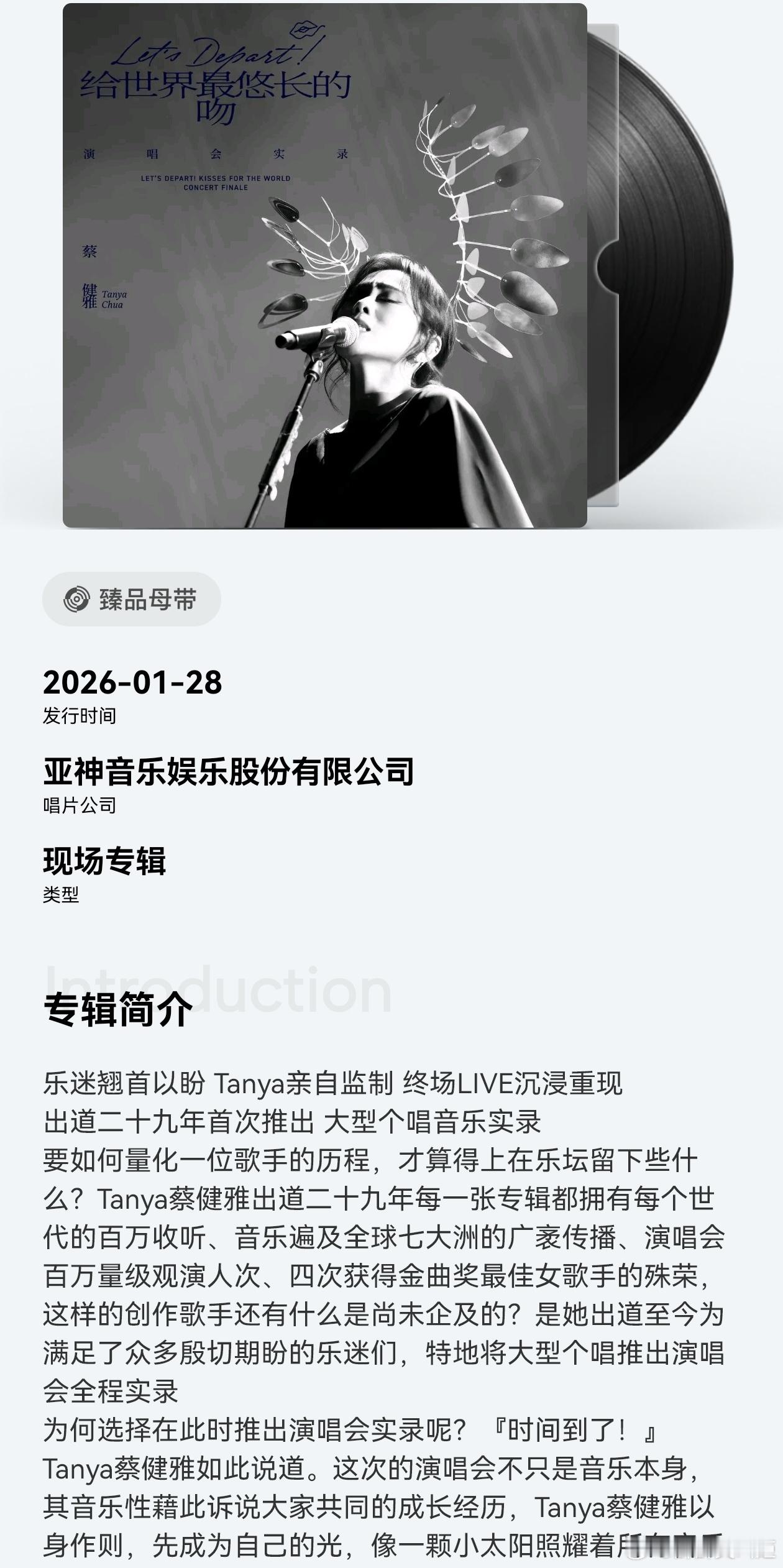 蔡健雅一口气出了27首live 又发现了宝藏live专辑!《Let’s Depart! 给世界最悠长的吻 演唱会实录》数 位 音 乐 今 日 正 式 上 线,27首live带领听众经历一场从黑暗走到光亮的情绪旅程,从巡演里的人生体悟到治愈人心的音乐力量,每一首都好听到单 曲 循 环 🔂!