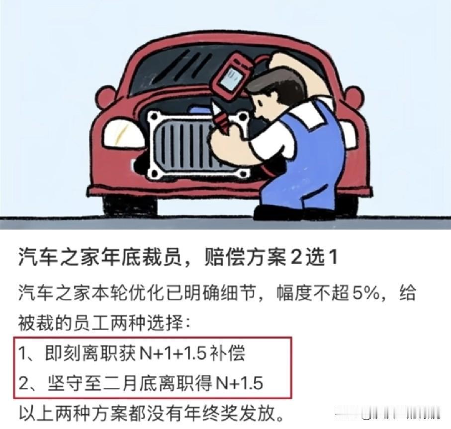 汽车之家,大幅裁员! 告诉大家一个悲伤的消息,昔日出门头等舱,只住五星级酒店的汽车媒体老师们,也迎来了“裁员广进”时刻。 2026刚开年,汽车媒体头部平台:汽车之家,宣布将开启裁员模式。一开始说裁员比例不超过5%,后来变成30%,有些部门直接连锅端,甚至是“三期”员工。也就是孕期、产期、哺乳期也没能逃过。 好在公司比较正规,给了两种裁员补偿方案。 第一种:马上离职,获得N+1+1.5的补偿。 第二种,2月底离职,获得N+1.5的补偿。 据说不少10年以上总监级的老员工也没人逃过这轮人员优化,拿着几十万的补偿金“滚”出了汽车之家办公大楼。 其实这轮才有,早在一年前就已经秘密谋划了。当时海尔收购汽车之家还没公开,但有媒体爆料,汽车之家内部存在宫斗贪腐及权色交易泛滥等问题,海尔在收购时将会一律裁掉总监级以上人员。没想到一年以后,这条传闻终于变成了现实。 以前国内最强的汽车网站,为何会沦落到如此地步?可能大多数人的观点是这帮高管能力不行,但其实汽车圈的人都知道,是整个大环境变了。 第一,这两年汽车厂家打价格战,打掉的是白花花的利润,巅峰时期一辆售价30万的车,在营销费用上要花10万到汽车媒体口袋里,没有5万也有3万,但现在毛利率都没有3万,还拿什么给你充值? 第二,以前买车去4S店,基本都在城乡结合部,平时很少去,但现在都是直营店,而且是在核心商圈逛个街的功夫就把车给买了,都是全国统一价钱,谁还会去网上查4S店在哪里?底价是多少? 所以员工拿到赔偿走人,企业被收购,然后慢慢萎缩,已经是汽车之家最好的结局了。