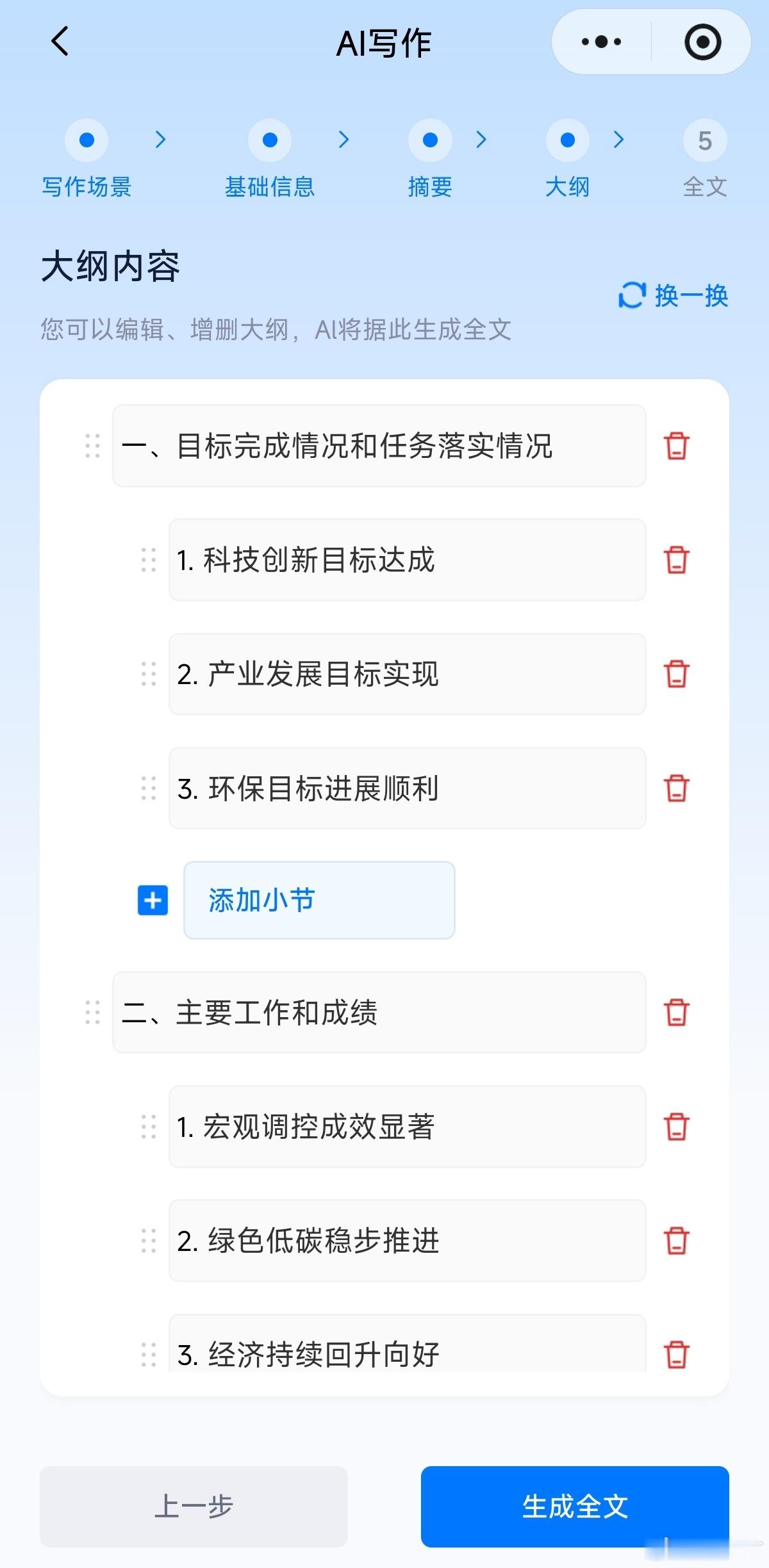 最近写年终述职的小伙伴可以试试 [新华妙笔]。操作很简单,从标题到大纲都有写作指引,全程AI生成。步骤式写作可以随时修改,最终结果会准确很多。而且我发现只要签到就能领字数,完全够用。述职报告年终总结写材料新华妙笔